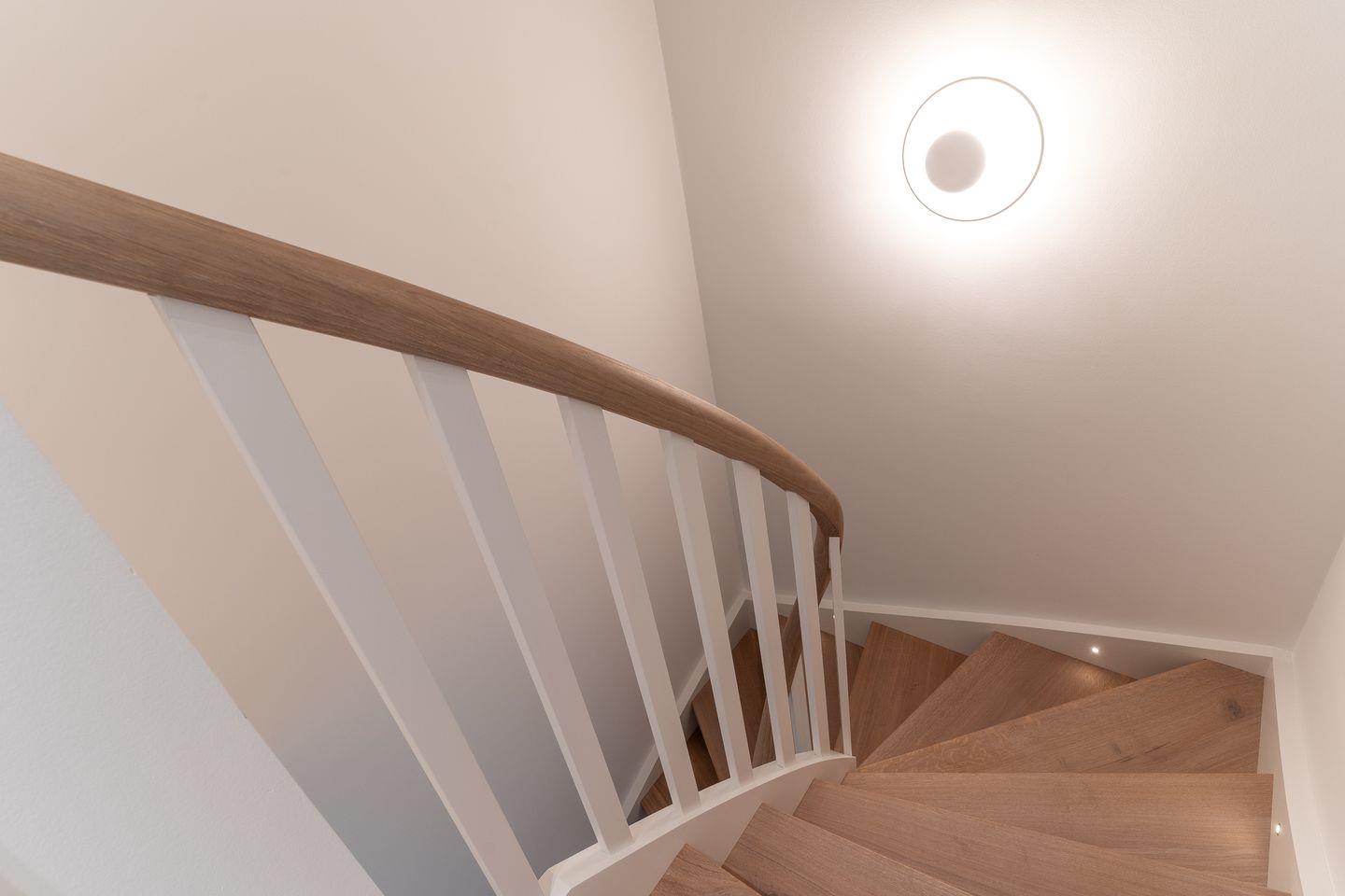 Im Erdgeschoss erwartet Sie ein lichtdurchflutetes Wohnzimmer mit Gaskamin und TV, eine offene Küche sowie ein gemütliches Esszimmer. Die Küche verfügt über hochwertige Elektrogeräte und genügend Platz zum gemeinsamen Kochen. An den Wohnbereich schließt sich ein Flur sowie ein Gäste-WC an.