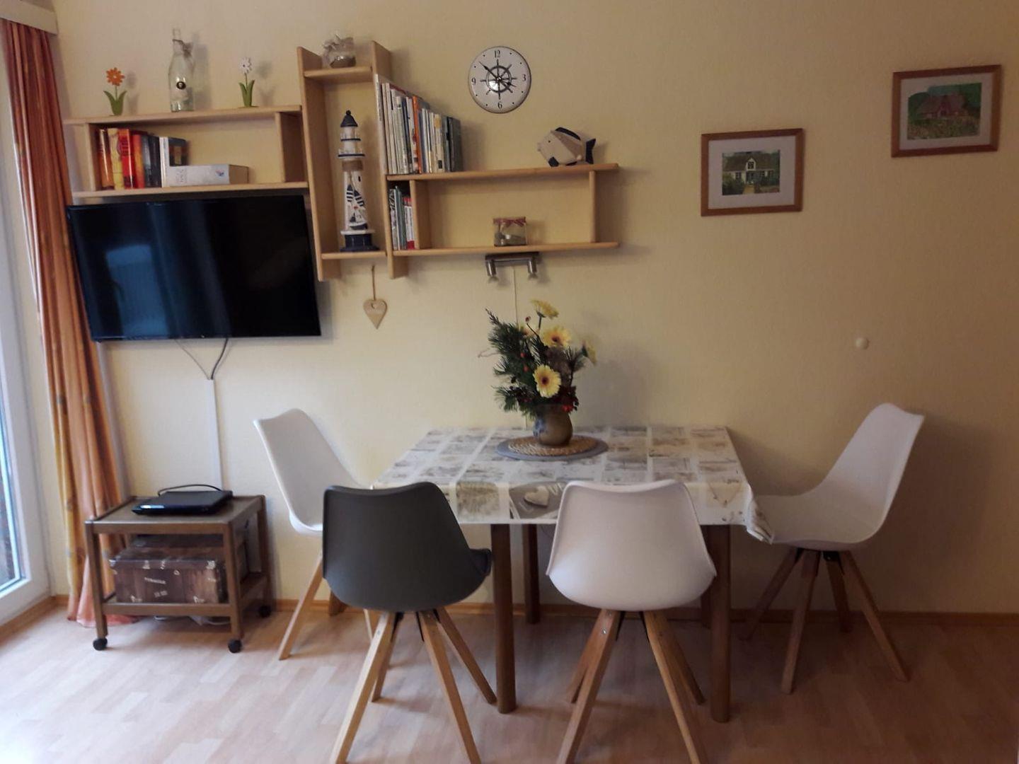Flachbild-TV, DVD-Player, Stereoanlage mit CD-Player MP3 via USB Stick, Ausgang zum kleinen Balkon (2 Personen)
