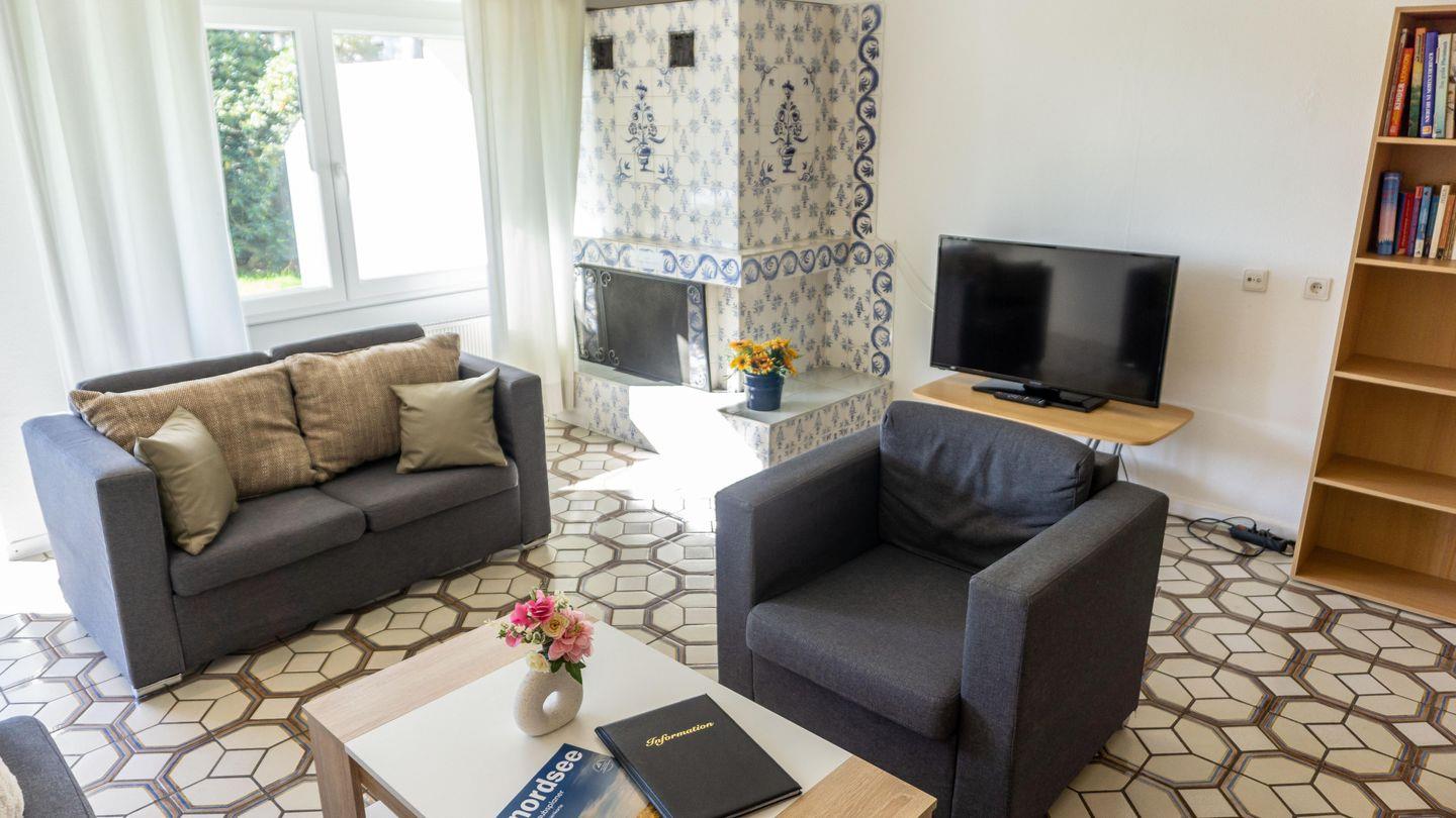 Wohnraum mit Ecksofa, SAT-TV
