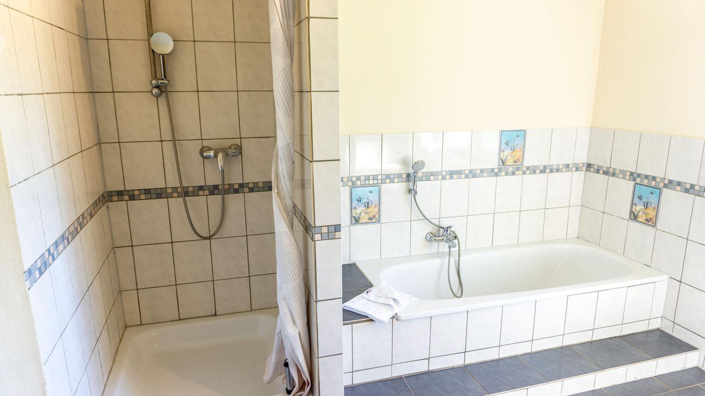 großes Badezimmer mit Dusche und Badewanne