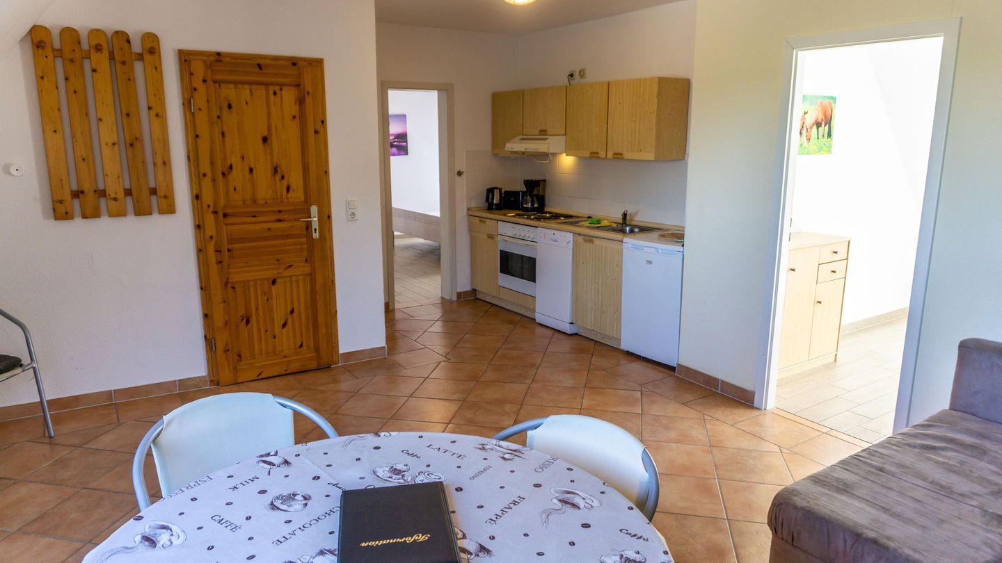 Der ruhig am Ortsrand gelegene Reiterhof verfügt über 7 Ferienappartements in unterschiedlicher Größe für bis zu 6 Personen. Die Wohnungen verfügen über eine zweckmäßige Einrichtung, teilweise mit Geschirrspülmaschine.