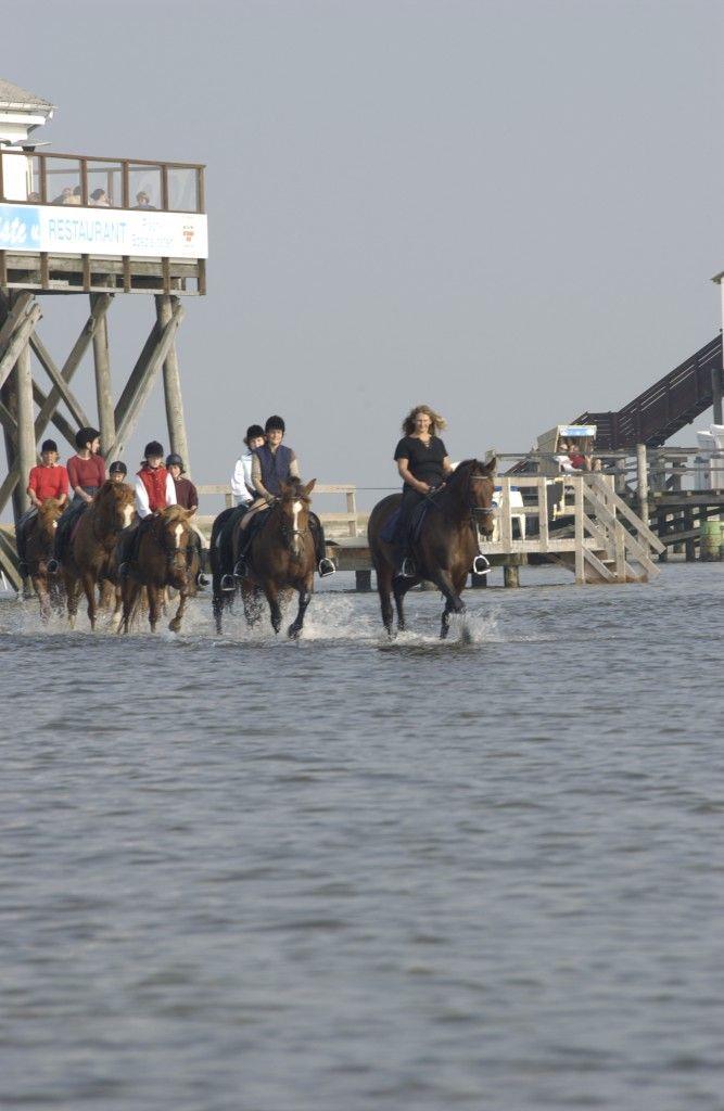 Der Reiterhof bietet unvergessliche Ausritte direkt am Sandstrand von St. Peter- Ording, der mit den Pferden in ca. 20 Minuten zu erreichen ist. Schöner kann ma diese abwechslungsreiche Natur kaum genießen. Salzwiesen, Vögel, Muscheln und Wellen laden zum Entspannen ein. Je nach Teilnehmer gibt es Gruppen mit und ohne Galopp.