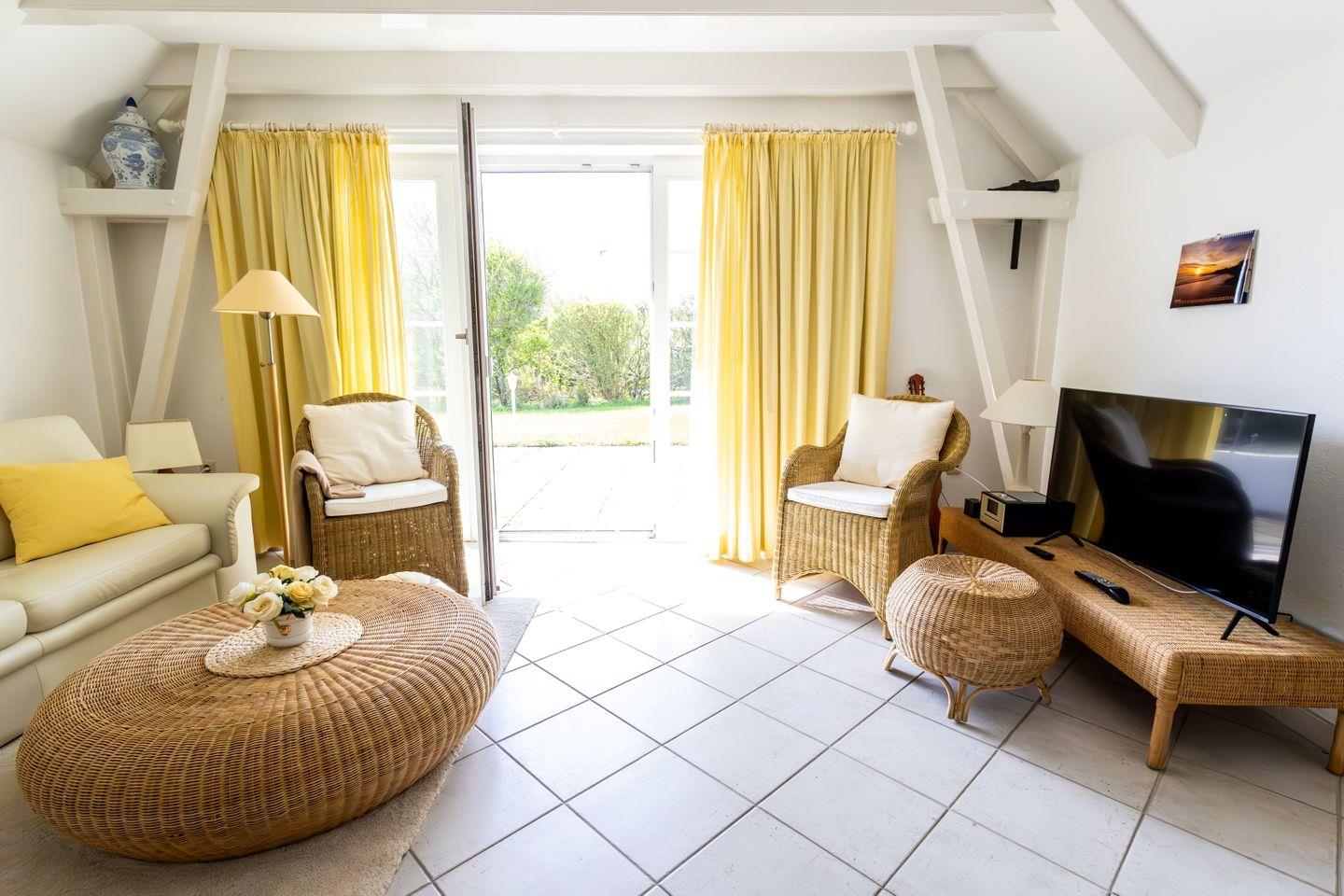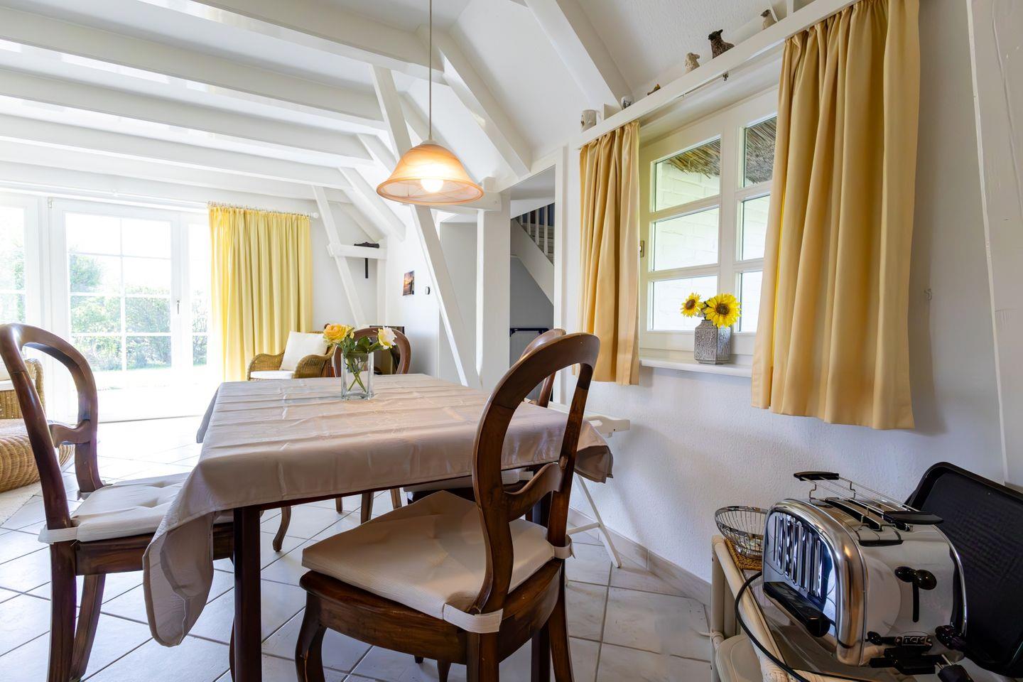 Direkt am Deich unter Reet gelegen bietet dieses stilvolle, große Appartement aus dem Jahr 1800 mit eigenem Eingang seinen Gästen einen Ort der Erholung in unmittelbarer Nähe zum größten Strandabschnitt des Ortes. Das gepflegte, 1500 qm große Grundstück lädt mit eigener Terrasse zum Entspannen ein. Einkaufsmöglichkeiten sind dank des neu erschlossenen Gewerbegebietes in Ording gut erreichbar, ebenso befindet sich eine Saison-Bäckerei in fußläufiger Umgebung. Auch der Nachbarortsteil Bad ist von hier aus gut erreichbar und bietet neben der Dünentherme auch eine Vielzahl an Geschäften und Restaurants für einen entspannten Einkaufsbummel. Nur 500 Meter zu Fuß zum Strandeingang an der Autobahnüberfahrt.