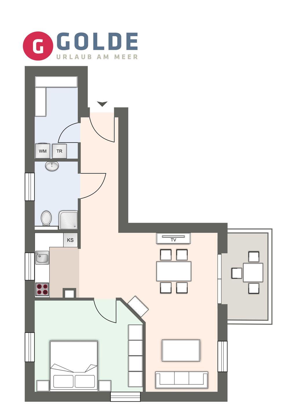 Ein weiteres Highlight dieser Ferienwohnung ist der hübsche Balkon, auf dem Sie entspannte Stunden genießen können. Lassen Sie sich von der frischen Nordseeluft inspirieren, während Sie Ihre Morgenkaffee oder einen Sundowner am Abend auf dem Balkon genießen.