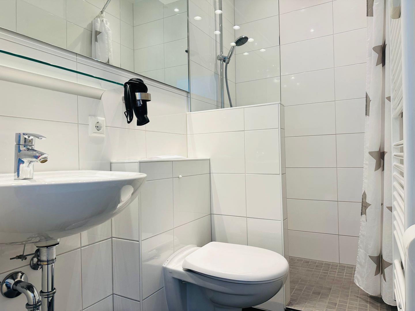 Direkt nebenan, im angrenzenden Flur, befindet sich ein Schrank, in dem Sie Ihre Kleidung und persönlichen Dinge verstauen können.
