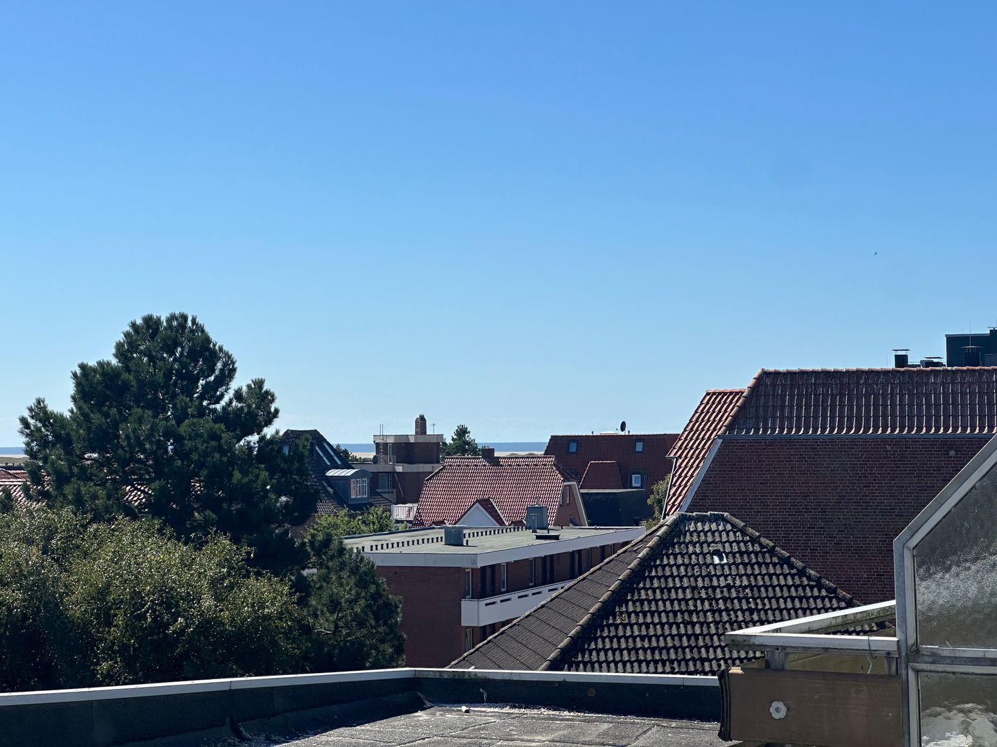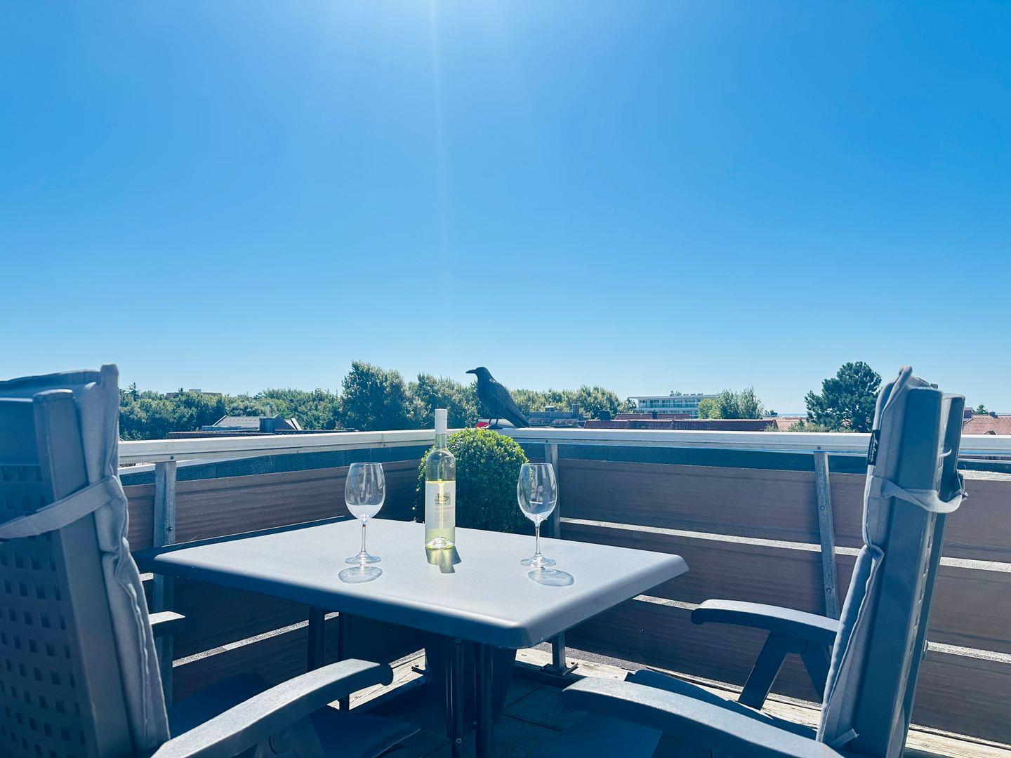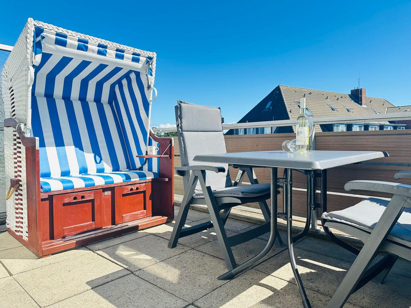 Die ruhige Dachterrasse ist mit ihrem Strandkorb ideal zum Entspannen geeignet.(Nutzbar von April-Oktober)