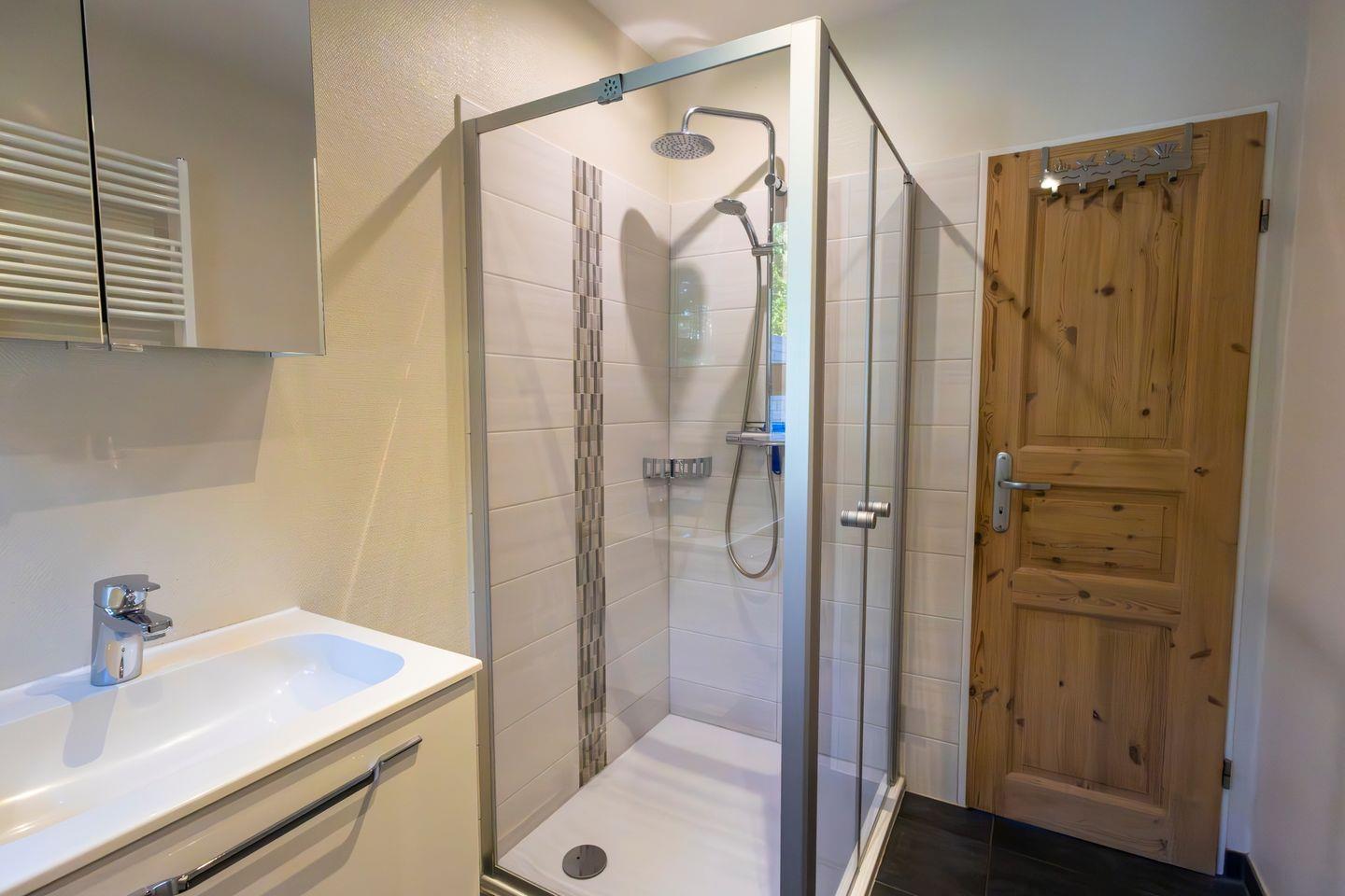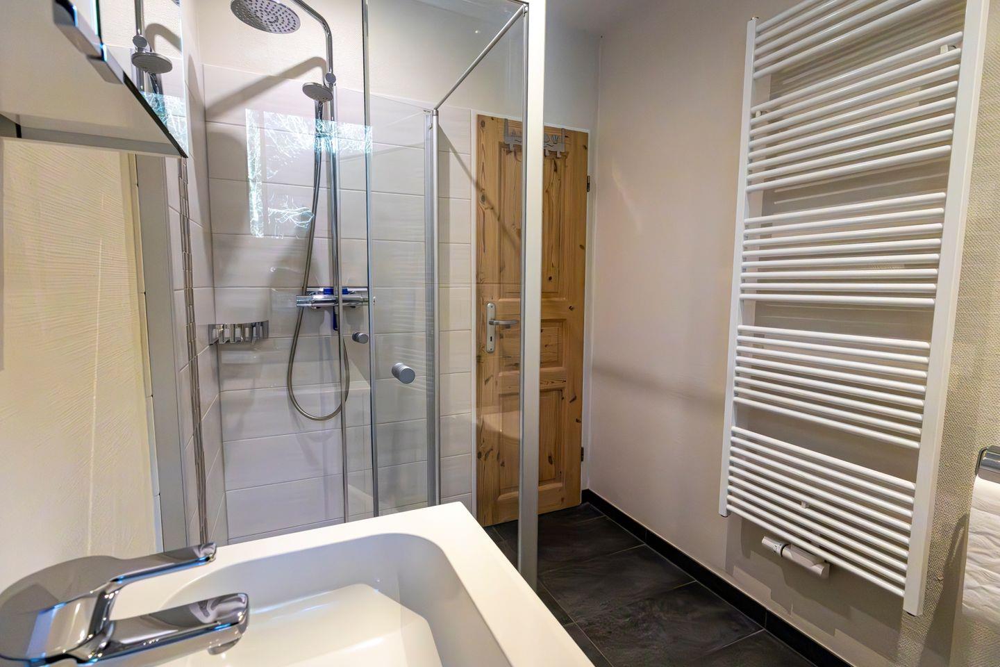 Im modernen Badezimmer mit Fenster stehen Ihnen Dusche, WC, Waschbecken, Spiegel, Haartrockner und Warmwasser zur Verfügung. Ebenfalls vorhanden sind eine Waschmaschine und ein Trockner, die Ihnen zusätzliche Flexibilität bei längeren Aufenthalten bieten.