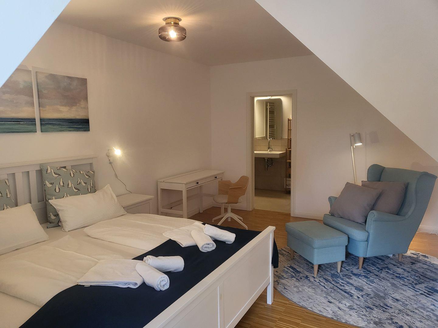 Die beiden Schlafzimmer im OG. sind mit hochwertigen Vinylböden ausgelegt und bieten ebenso wie das Wohnzimmer ausreichend Stauraum durch Kommoden. Die Schlafmöglichkeiten sind insgesamt für vier Personen ausgelegt; auf Zustellbetten wurde bewusst verzichtet, wodurch ein angenehmes Raumgefühl entsteht. In beiden Schlafzimmern profitieren Sie von einer angenehmen und allergikerfreundlichen Umgebung.