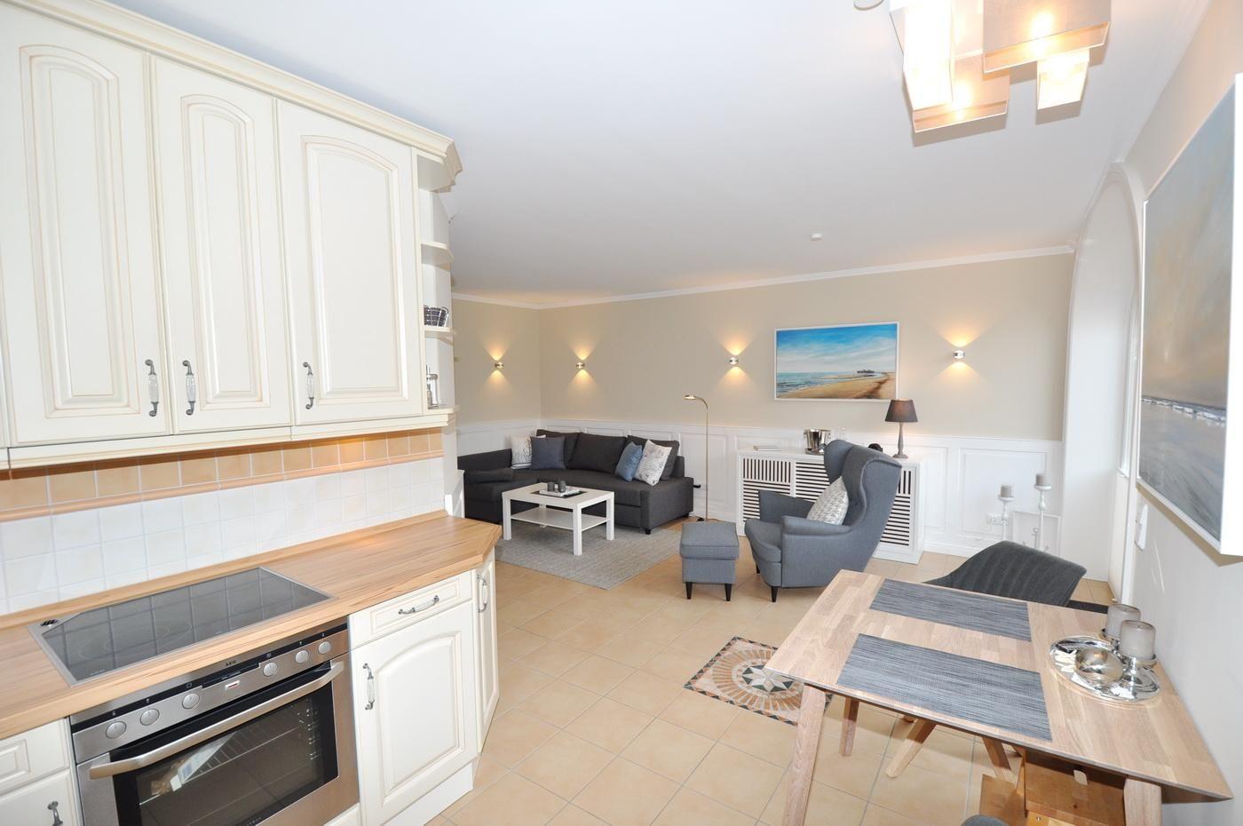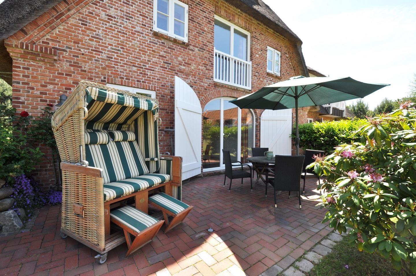 Im Wohnbereich steht Ihnen ein bequemes Sofa mit Schlaffunktion, sowie eine Bose Bluetooth Box zur Verfügung. Die sonnige Terrasse mit Blick ins Grüne ist mit Gartenmöbeln, Sonnenschirm und Strandkorb ausgestattet.