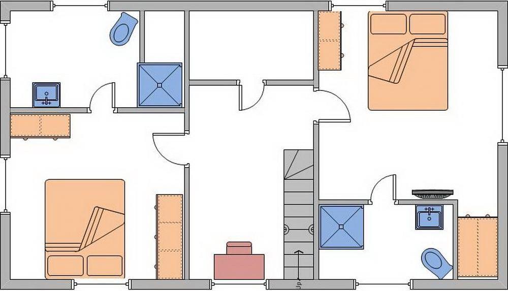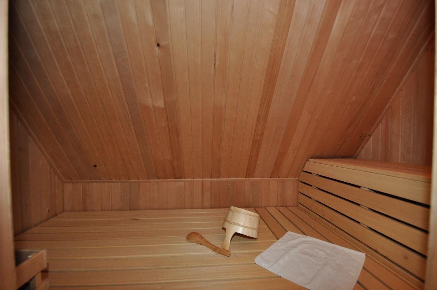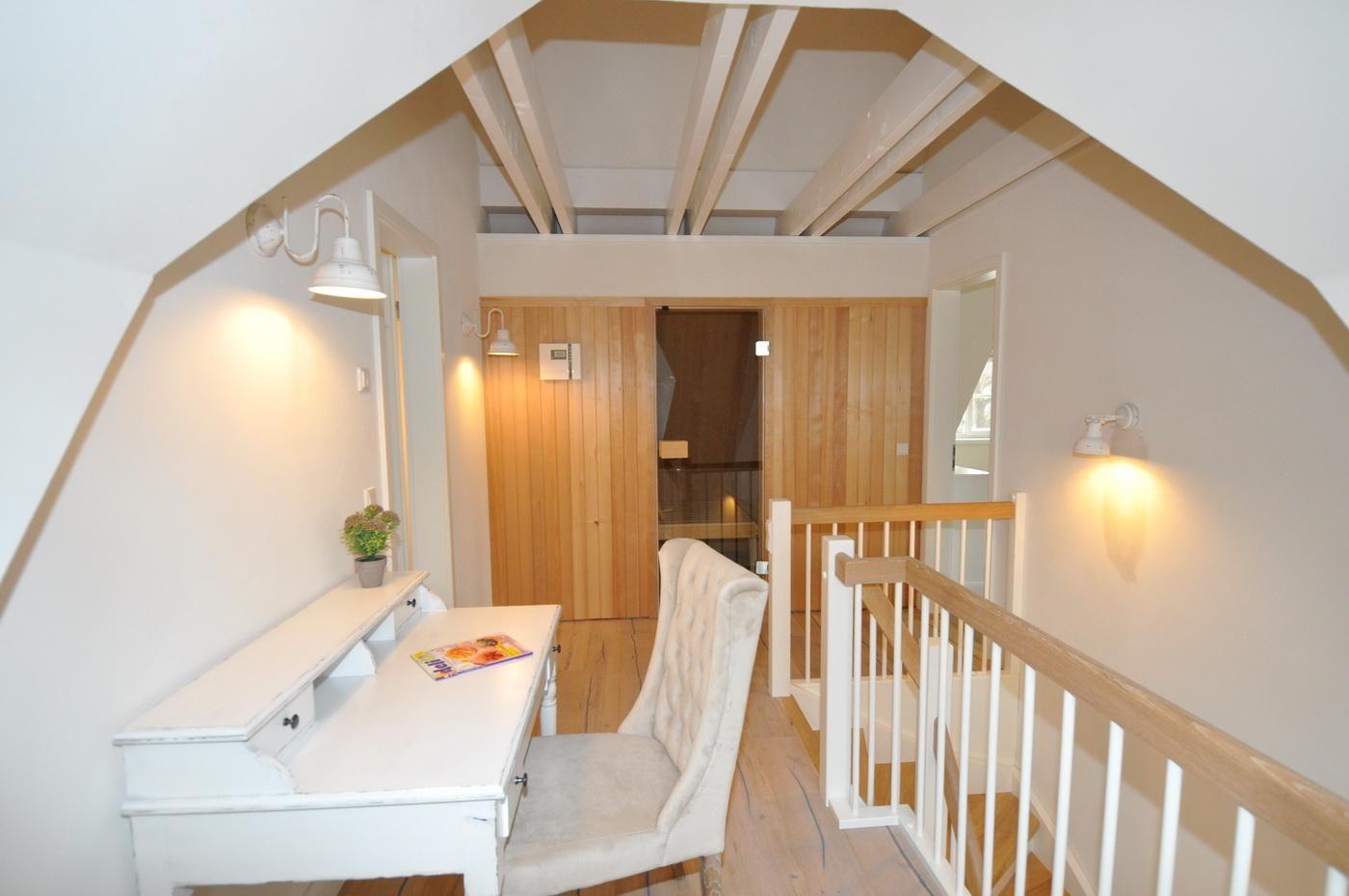 Obergeschoss: offene Galerie mit Sekretär und Sauna, 2 Schlafzimmer mit Doppelbett (je 180 x 200 cm - Einzelmatratzen) jeweils mit angegliedertem Duschbad / WC