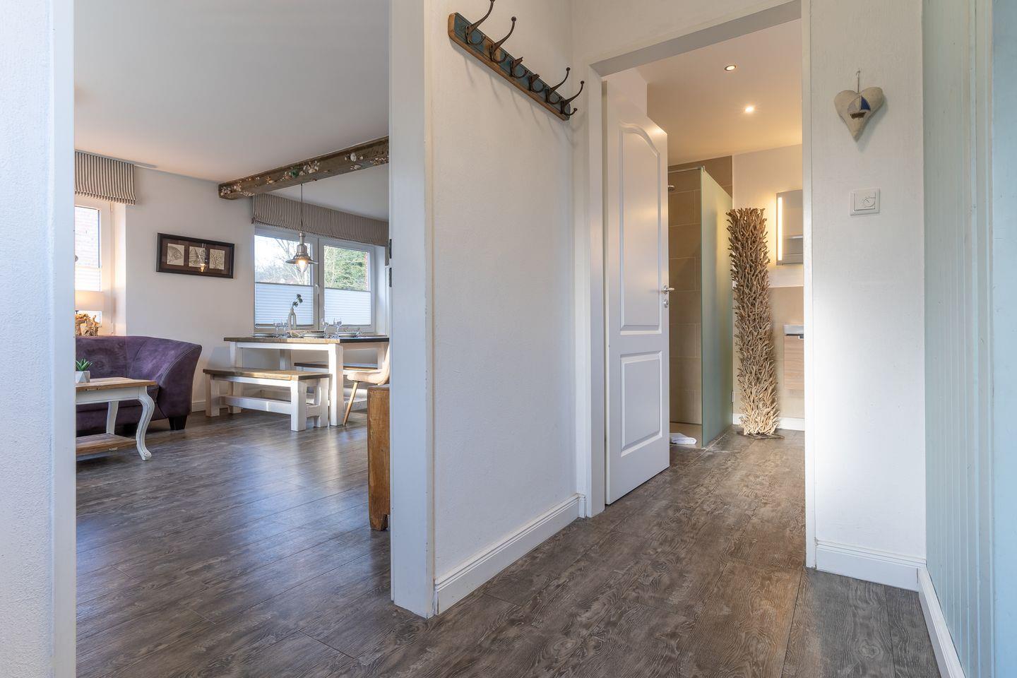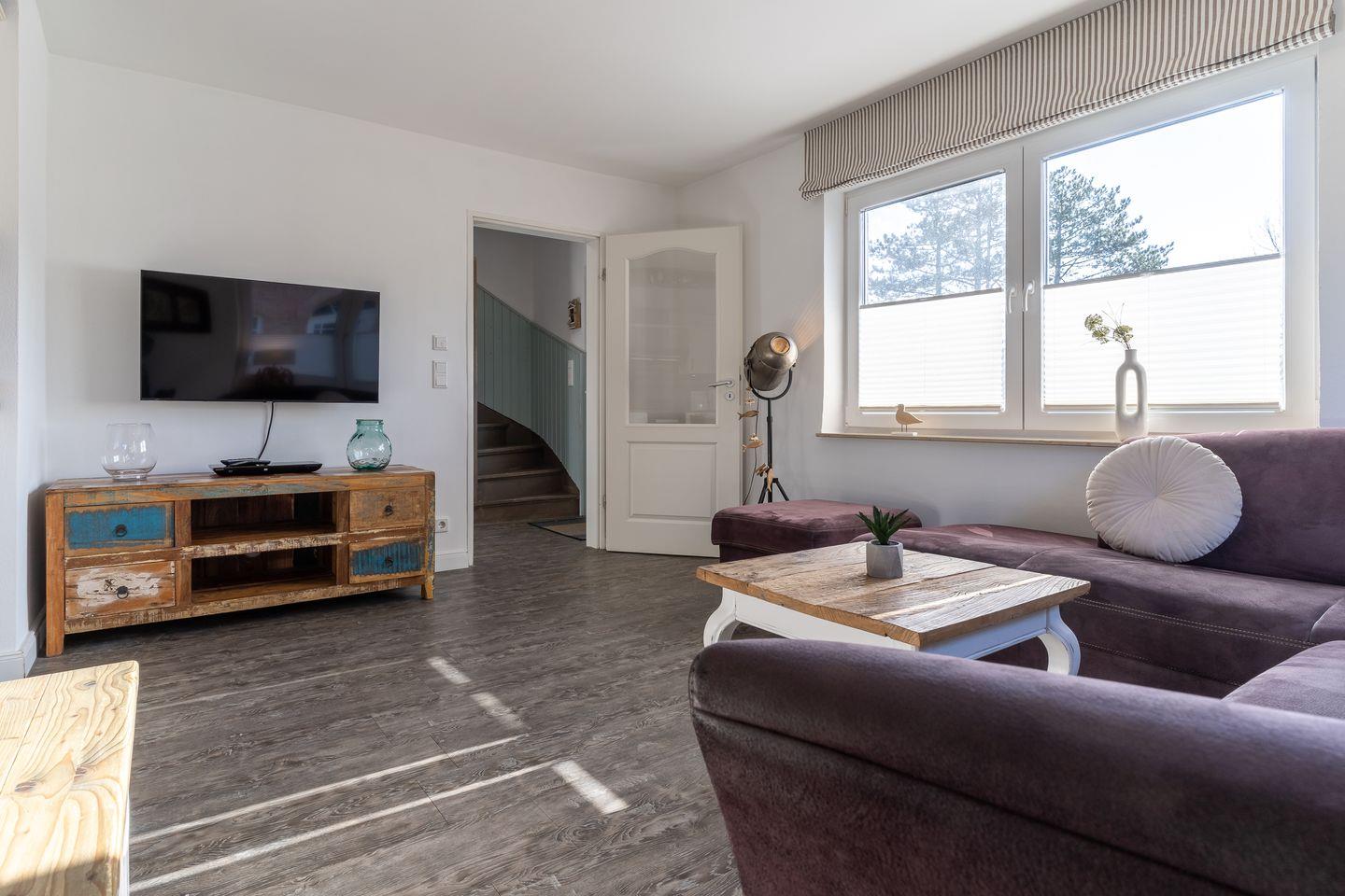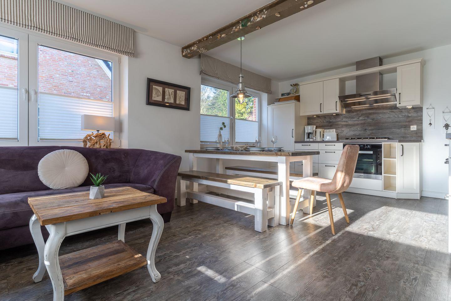 Das wunderschöne "Frahmshus" bietet Platz für 1-6 Personen. (8 Personen auf Anfrage) Das Grundstück mit Stellplatz, Garten und einer großzügigen Terrasse inklusive Gartenmöbeln ist mit hübschen Pflanzen angelegt und umzäunt. Das Haus verfügt über ca. 100m² Wohnfläche und teilt sich wie folgt auf: Im Erdgeschoss befindet sich der Wohnraum und eine großzügige offenen Wohnküche. Ein stilvoller Flur mit Zugang zum großzügigen Garten, sowie ein großzügiges Duschbad.