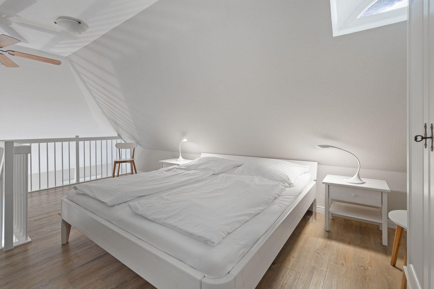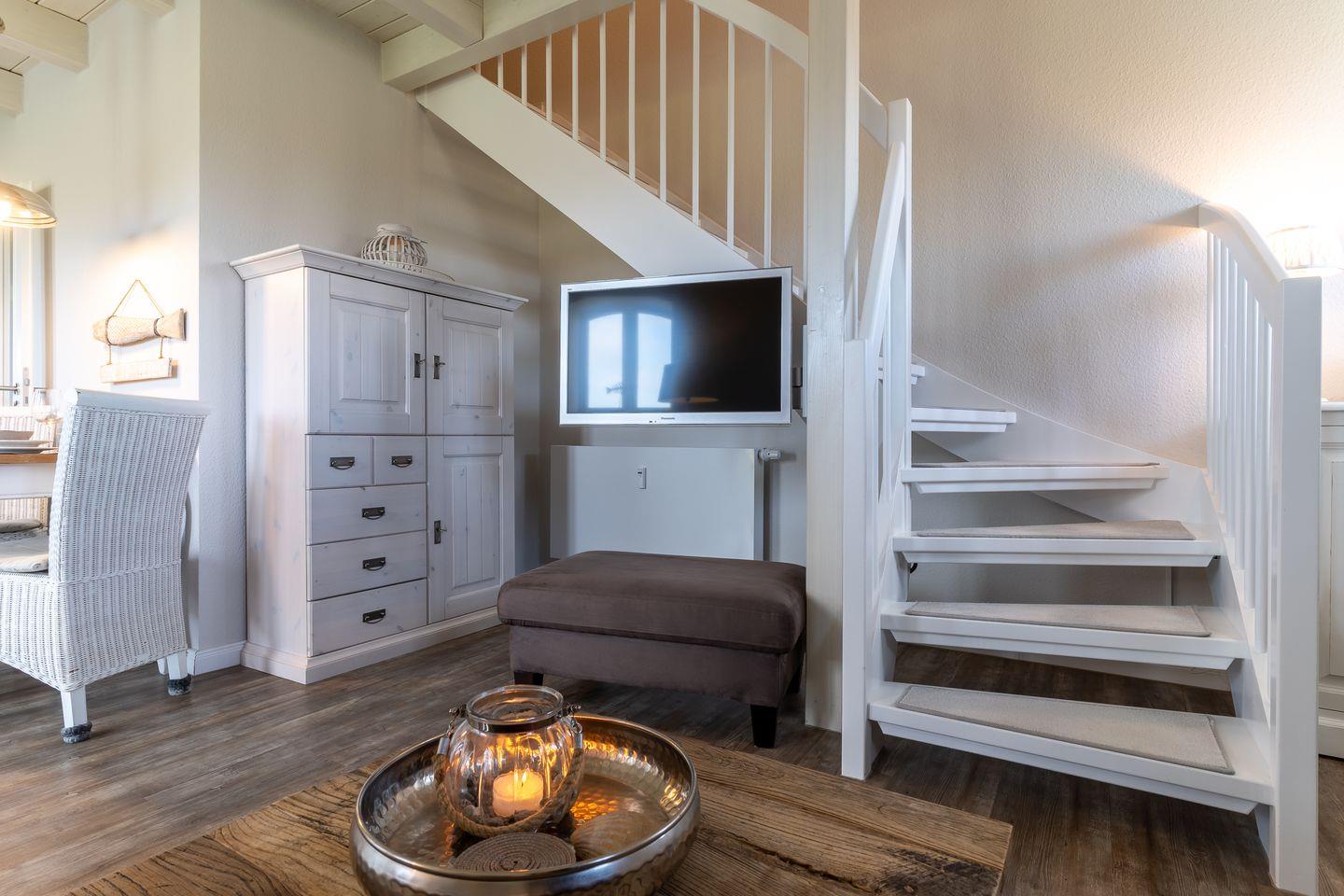 Das wunderschöne Apartment unter Reet wurde mit modernen Möbeln ausgestattet und bietet großzügigen Platz für 2 Personen. Das Grundstück mit Stellplatz wurde mit hübschen Pflanzen angelegt. Auf der Sonnenterrasse mit Gartenmöbeln und Strandkorb, umgeben von Schafwiesen und Pferdekoppeln, kann man herrlich ausspannen und die Ruhe genießen. Das Appartement befindet sich im Erdgeschoss über 2 Etagen. Es verfügt über ca. 60 m² Wohnfläche und teilt sich wie folgt auf: Auf der ersten Etage befindet sich ein großzügiger Wohnraum mit einer offenen Küche und einem gemütlichen Essbereich. Die Küche ist voll ausgestattet. Ein separates Duschbad bietet jeden Komfort. Über eine Holztreppe gelangt man zur Schlafgalerie im Dachgeschoss. Das Schlafzimmer verfügt über ein 1,8 x 2,0 m Bett. Kostenlose W-LAN Nutzung.