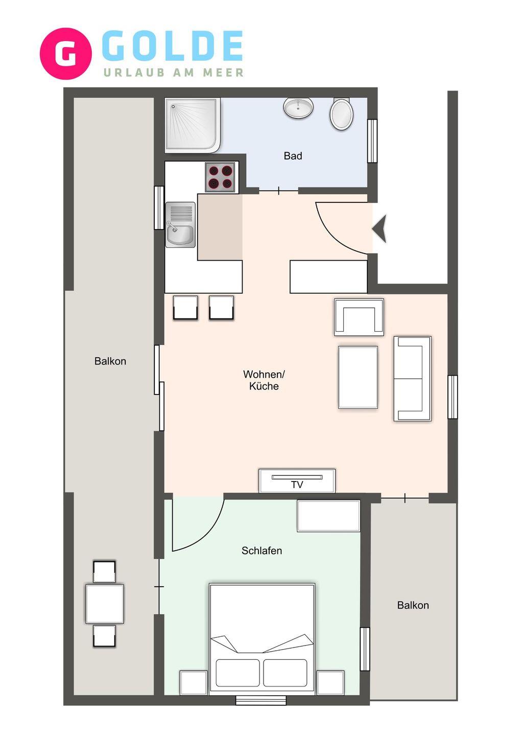 Das Penthouse verfügt über ca. 50 m² Wohnfläche und ist sehr lichtdurchflutet. Ein gemütliches Wohnzimmer mit TV und offener Wohnküche laden zum Chillen ein. Die Küche ist mit hochwertigen Geräten voll ausgestattet. Das Duschbad ist großzügig gestaltet und bieten genügend Platz für Ihre Utensilien. Ein Schlafzimmer mit Doppelbett und offenem Fußende sorgt für ruhevolle Erholung.