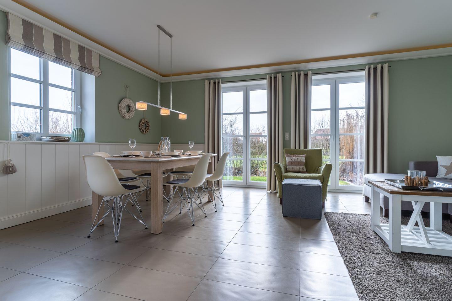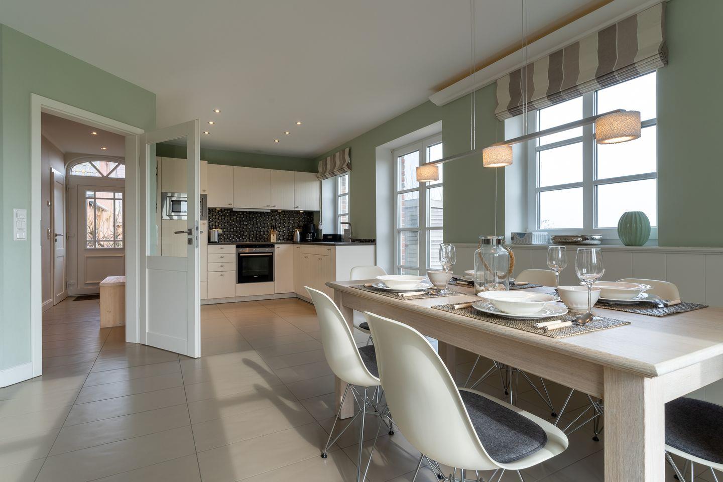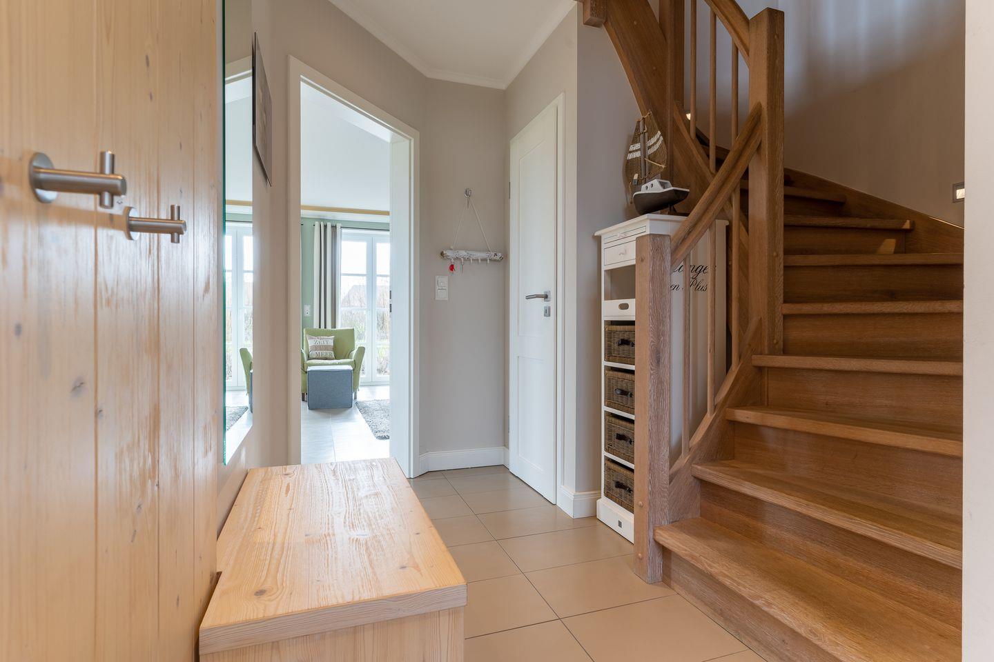 Das luxuriöse Ferienhaus mit Garten und gemütlicher Terrasse und traumhaften Blick über die Wiesen befindet sich in einer ruhigen Parallelstraße zum Strand im Ortsteil Ording Das Haus verfügt über ca. 100m² Wohnfläche und teilt sich wie folgt auf: Im Erdgeschoss befindet sich der Wohnraum mit einer großzügigen offenen Wohnküche und einem gemütlichen Essbereich. Die Küche ist voll ausgestattet mit hochwertigen Geräten und edlem Geschirr von Villeroy & Boch. Im Erdgeschoss ist ebenso ein großer Flur mit eingebauter Garderobe, ein Hauswirtschaftsraum und ein Duschbad. Über eine Holztreppe gelangt man in das Obergeschoss mit zwei großzügigen Schlafzimmern, einem Vollbad mit Dusche und Badewanne. Über eine weitere Holztreppe geht es vom Flur ins Dachgeschoss mit gemütlichen 2 Einzelbetten. Mit viel Liebe zum Detail wurde großen Wert auf die Inneneinrichtung gelegt. Das ganze Haus verfügt über große Fenster und somit ist jeder Raum herrlich lichtdurchflutet.