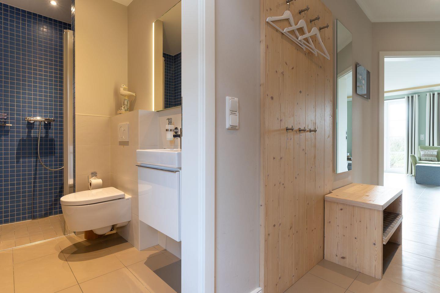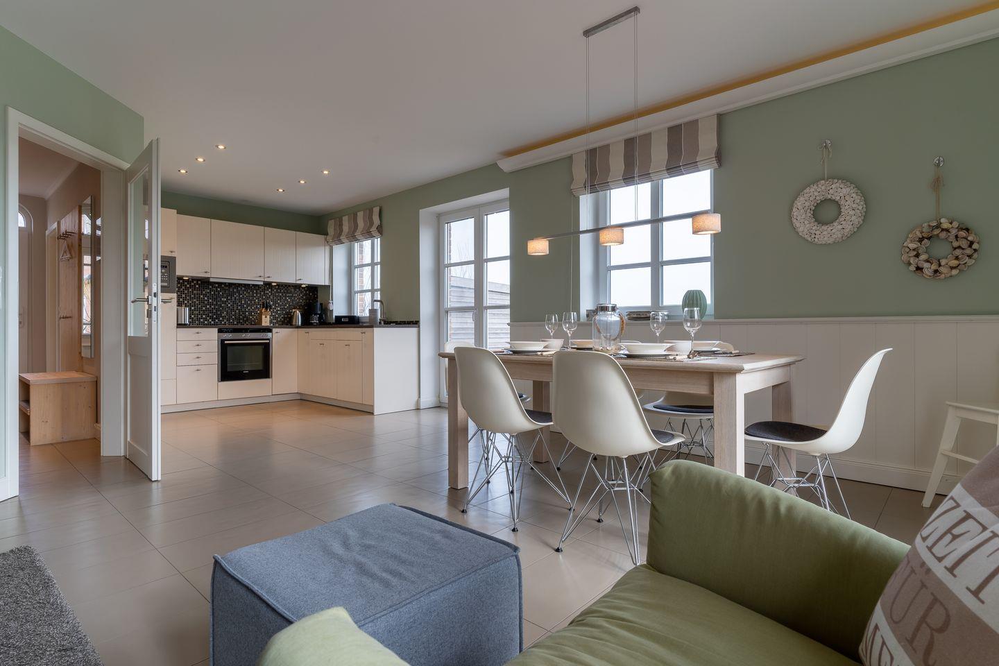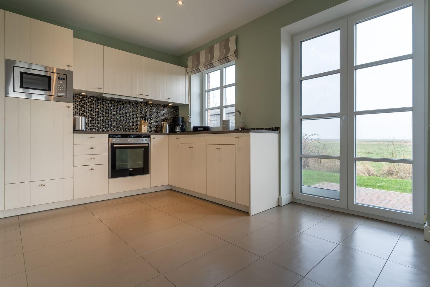 Das luxuriöse Ferienhaus mit Garten und gemütlicher Terrasse und traumhaften Blick über die Wiesen befindet sich in einer ruhigen Parallelstraße zum Strand im Ortsteil Ording Das Haus verfügt über ca. 100m² Wohnfläche und teilt sich wie folgt auf: Im Erdgeschoss befindet sich der Wohnraum mit einer großzügigen offenen Wohnküche und einem gemütlichen Essbereich. Die Küche ist voll ausgestattet mit hochwertigen Geräten und edlem Geschirr von Villeroy & Boch. Im Erdgeschoss ist ebenso ein großer Flur mit eingebauter Garderobe, ein Hauswirtschaftsraum und ein Duschbad. Über eine Holztreppe gelangt man in das Obergeschoss mit zwei großzügigen Schlafzimmern, einem Vollbad mit Dusche und Badewanne. Über eine weitere Holztreppe geht es vom Flur ins Dachgeschoss mit gemütlichen 2 Einzelbetten. Mit viel Liebe zum Detail wurde großen Wert auf die Inneneinrichtung gelegt. Das ganze Haus verfügt über große Fenster und somit ist jeder Raum herrlich lichtdurchflutet.