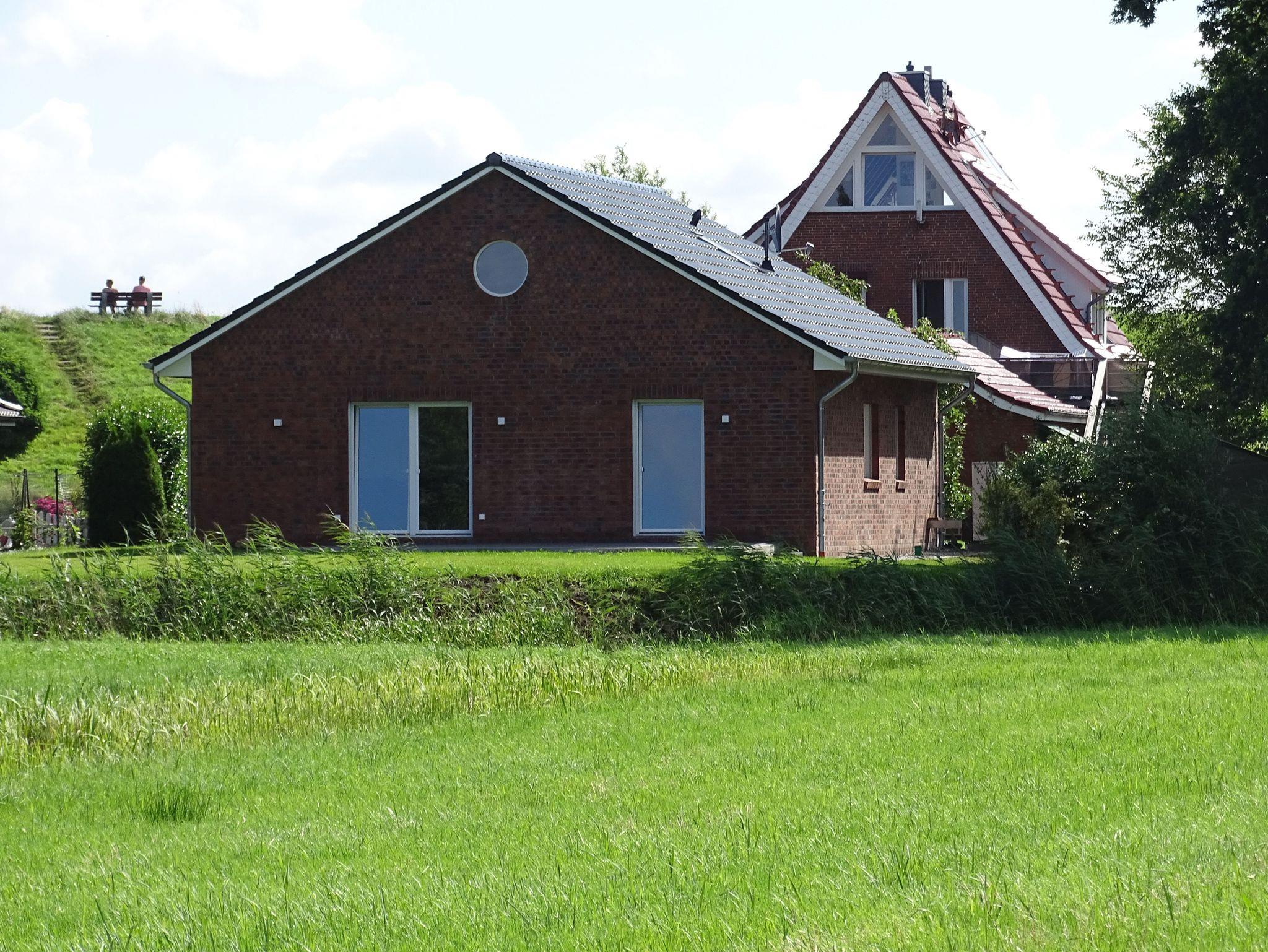 Unmittelbar am Abbenflether Elbdeich und Sandstrand, wo die dicken Pötte des Hamburger Hafens zum Greifen nah vorüberziehen, liegt unser nagelneues Ferienhaus Pagensand, als Ergänzung zu unserer bereits sehr beliebten Ferienwohnung. Genießen Sie die absolute Ruhe inmitten der herrlichen Natur des Kehdinger Landes auf einem eigenen Grundstück! Nur durch eine sehr ruhige Anwohnerstraße, die gleichzeitig Teil diverser Radwege ist, vom Deich getrennt, liegt vor dem Haus die Elbe mit ihrem feinen Sandstrand und den grasenden Schafen. Aus Küche und Wohnzimmer fällt der rückwärtige Blick über die Terrasse und den Garten in die Weite von Wiesen und Feldern, mit traumhaftem Wolkenspiel und romantischen Sonnenuntergängen am Himmel. Das gerade erst fertiggestellte Ferienhaus bietet Ihnen auf ca. 90 m² Wohnfläche mit zwei separaten Schlafzimmern Platz für 4 bis 5 Gäste, ein großzügiges Bad mit ebenerdiger Dusche sowie eine offene Küche mit angeschlossenem Wohn- und Essbereich. Ein hoher Sichtdachstuhl gibt diesem großen Raum eine besonders wohnliche Atmosphäre. Die gesamte Wohneinheit ist barrierefrei und behindertenfreundlich gestaltet. Gerade bei den Hundebesitzern unter den Gästen unserer schon bestehenden Ferienwohnung im ursprünglichen Kapitänshaus, sind der Abbenflether Strand und das Grünland der Deiche äußerst beliebt. Nach ausgiebigen Spaziergängen, Spielen im weichen Sand oder sogar einem erfrischenden Bad in der Elbe, können Sie sich mit Ihrem vierbeinigen Freund in einen abgeschlossenen Garten rund um ein geräumiges Ferienhaus zurückziehen. Zur Entspannung auf der Sonnenterrasse stehen Ihnen dabei natürlich Gartenmöbel, Tisch und Sonnenschirm sowie ein Holzkohlengrill zur Verfügung. Das Ferienhaus verfügt über zwei Kfz-Stellplätze und für Ihre eventuell mitgeführten Fahrräder - die aber natürlich auch vor Ort zu leihen sind - steht eine eigene Garage bereit.