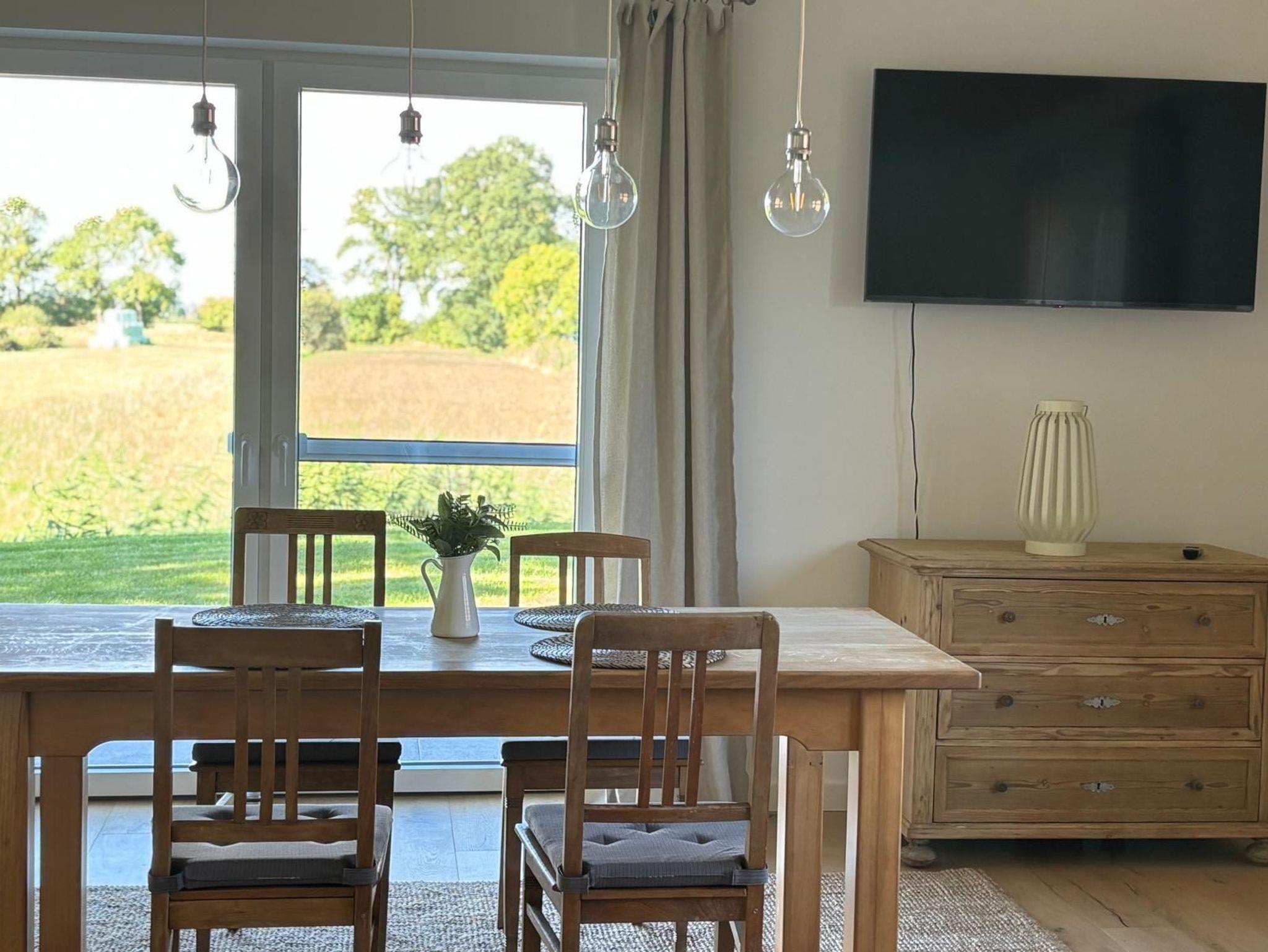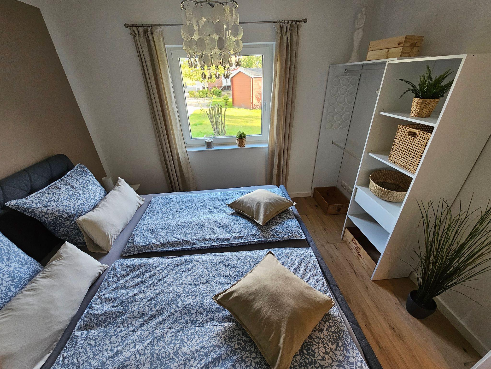 Ganz neu erbautes, freistehendes Ferienhaus auf einem abgeschlossenen Grundstück. Wohnfläche ca. 90 m², zwei separate Schlafzimmer mit jeweils einem Doppelbett (davon einmal Boxspring). Großes Badezimmer mit ebenerdiger Dusche, WC und Waschtisch. Gäste-WC mit Handwaschbecken. Offener Küchenbereich mit Kühlschrank, Gefriereinheit, Geschirrspüler, Backofen, Mikrowelle und Kochinsel mit Induktionsherd und Absaugung, Kaffeemaschine, Wasserkocher, Toaster usw. Angrenzender Wohn- und Essbereich mit (Schlaf-) Couch, großem Esstisch, SAT-TV und W-LAN im ganzen Haus. Sonnenterrasse mit Gartenmöbeln, Sonnenschirm und Grillmöglichkeit. Zwei PKW-Stellplätze und verschließbarer Abstellraum für Fahrräder.