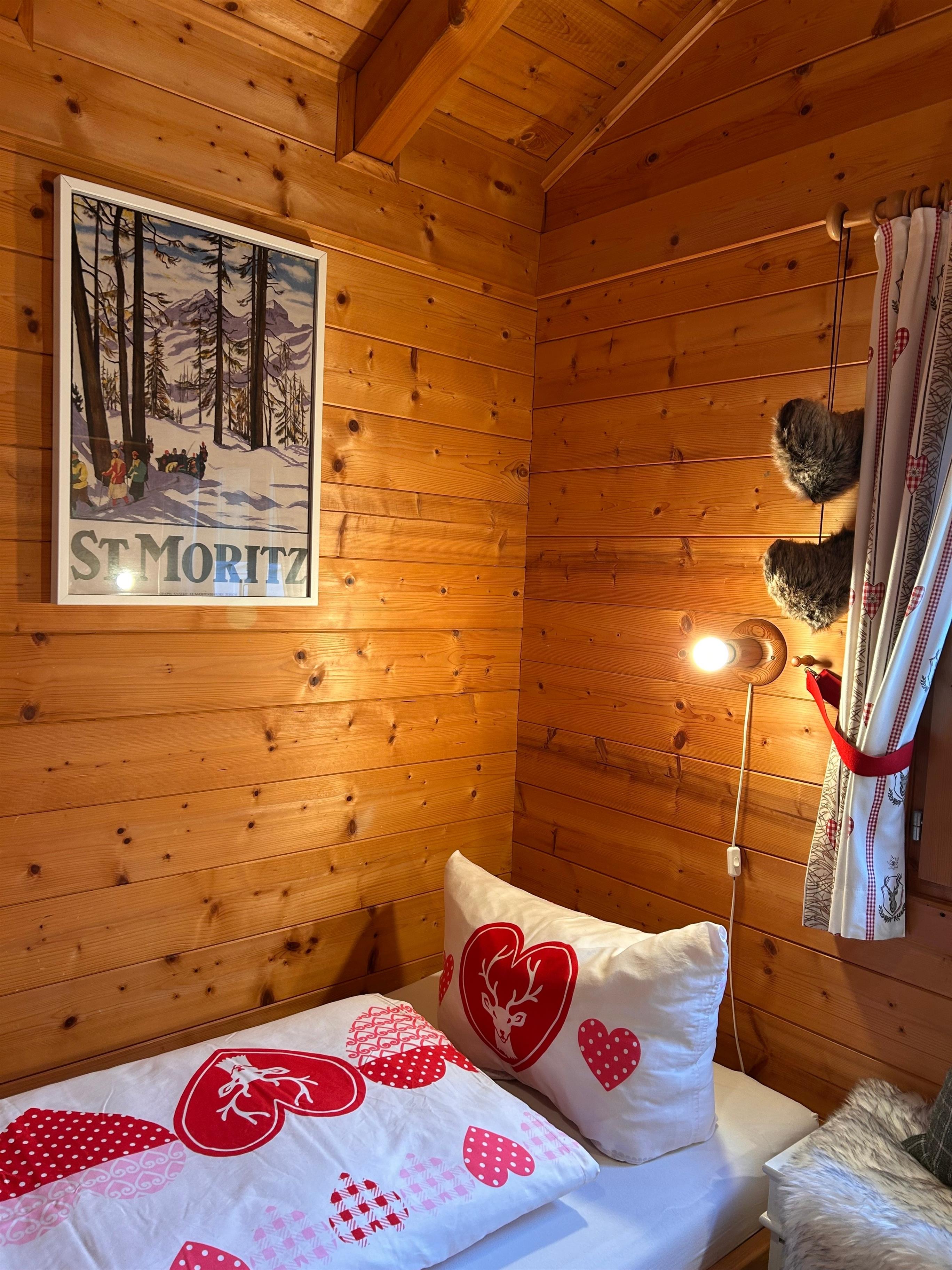 1 Schlafraum mit zwei getrennten Betten und eingebautem Hochbett und genügend Stauraum für Kleidung.
