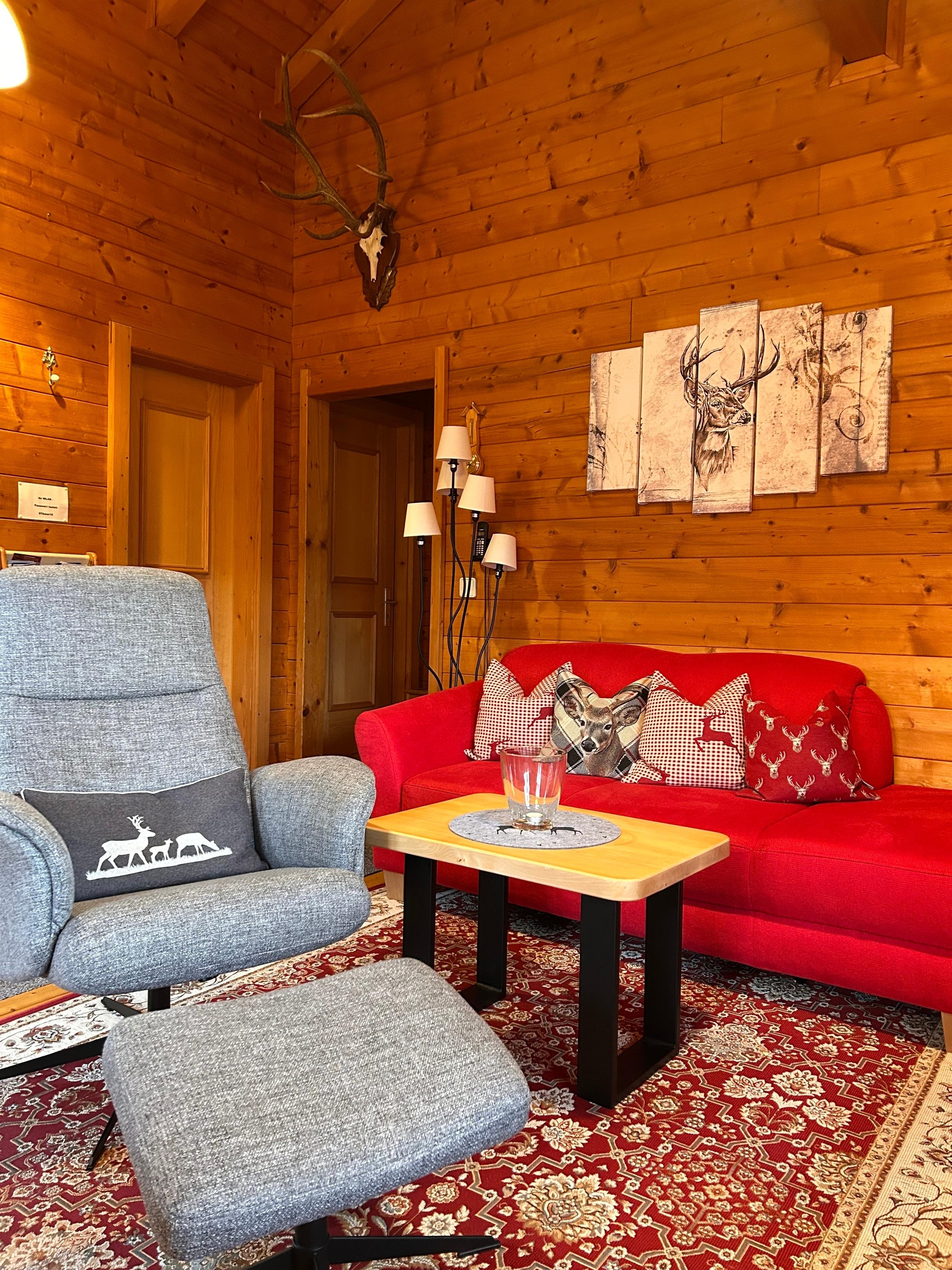 Winterfestes Blockhaus mit hochwertiger Ausstattung in Waldrandlage