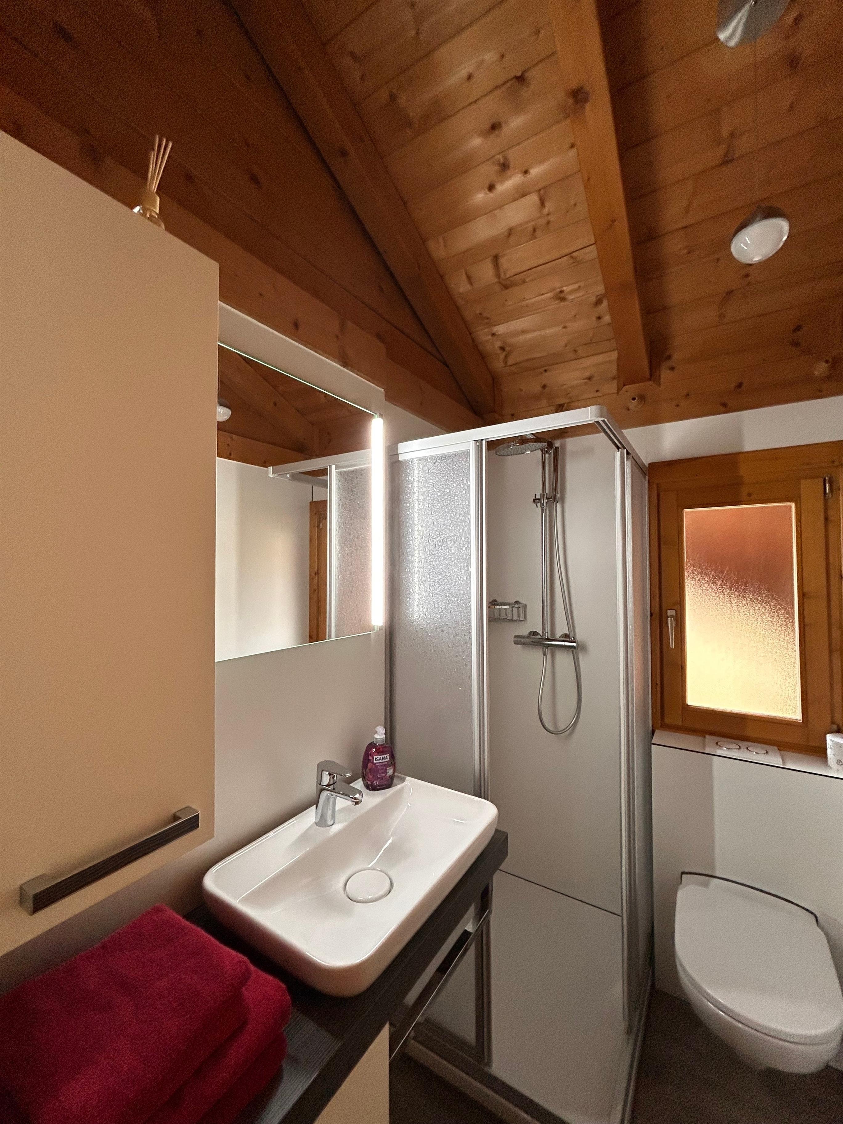 1 Schlafzimmer mit Doppelbett und grossem 3-türigen Kleiderschrank.