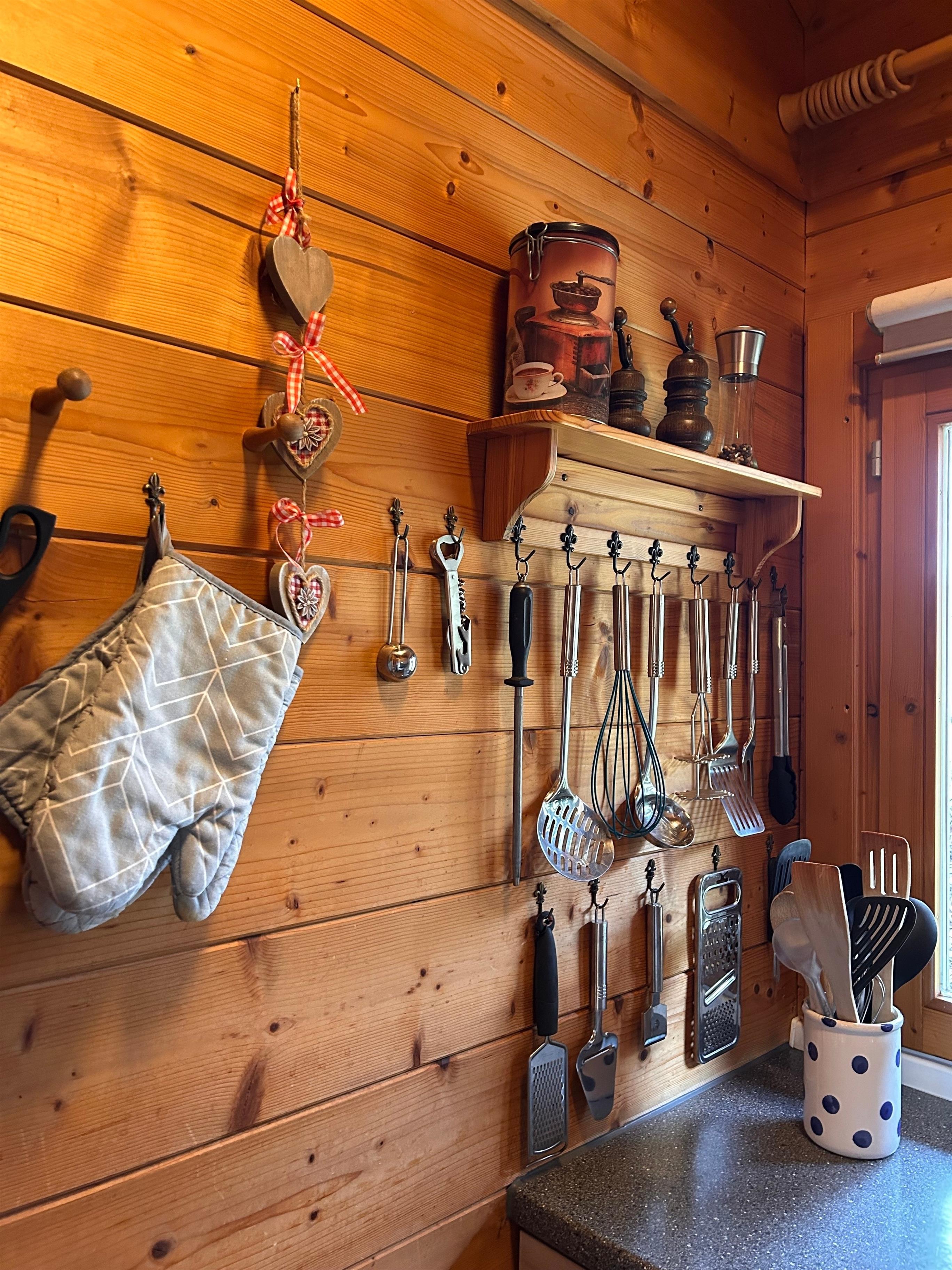 Voll ausgestattete Küche mit Geschirrspüler, Kühlschrank mit Tiefkühlfach, Cerankochfeld mit Grill-Backofen, Toaster, Kaffeemaschine, Wasser- und Eierkocher, Handmixer sowie allen erforderlichen Bestecken und Küchenwerkzeugen.