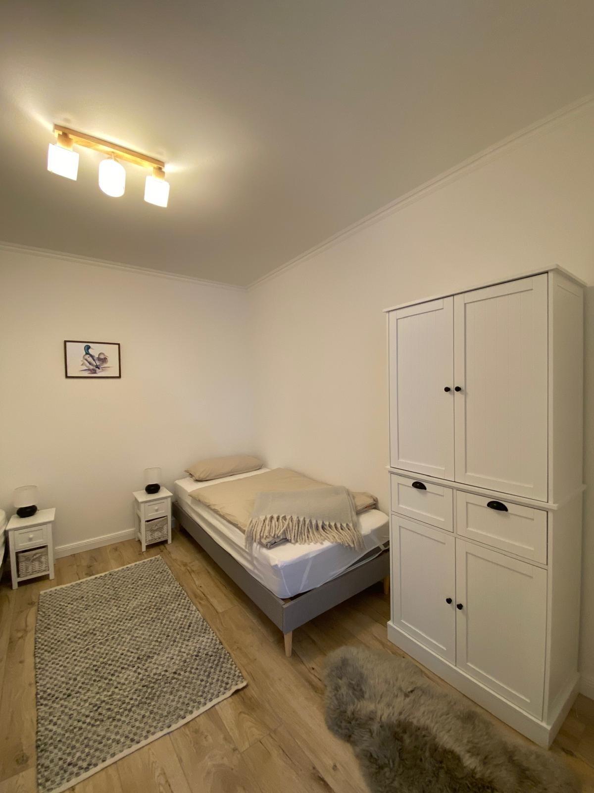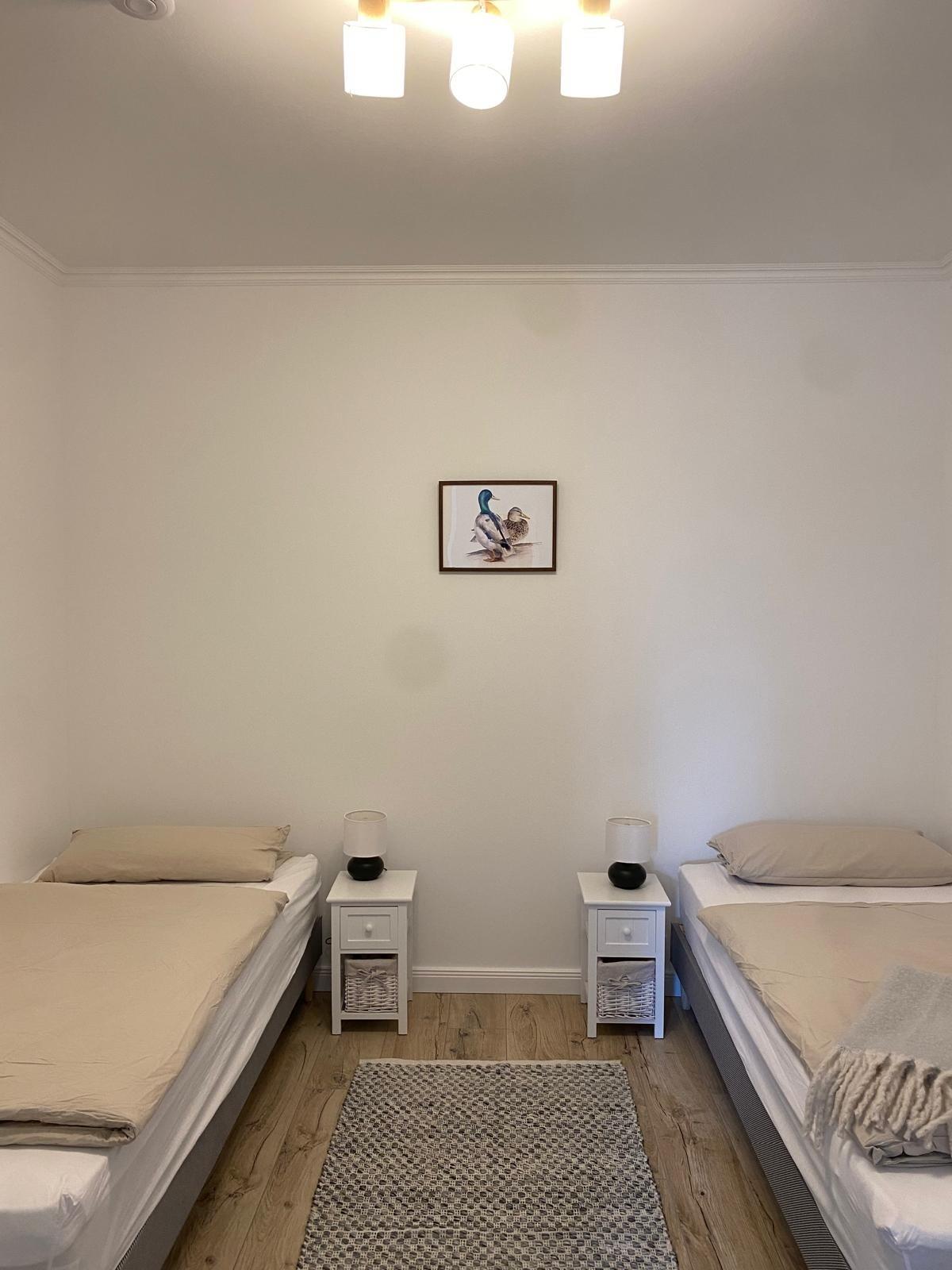 Es befinden sich 2 Schlafzimmer ( 2 Einzelbetten und ein 180 cm x 200 cm großes Doppelbett ) in der Wohnung.