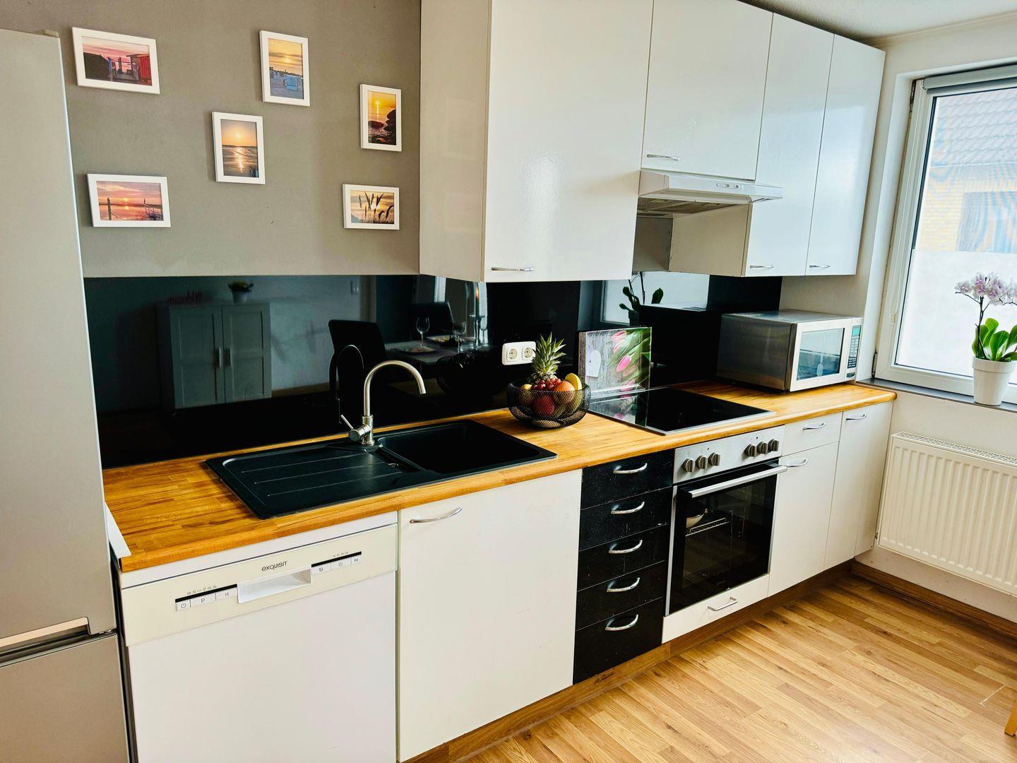 Die voll ausgestattete Küche mit Spülmaschine, Kühlschrank, Gefrierschank, Backofen und Ceran-Kochfeld ermöglicht es Ihnen, Ihre Lieblingsgerichte zuzubereiten. Oder aber Sie erkunden die nahegelegenen Restaurants und probieren regionale Spezialitäten frisch aus dem Meer.