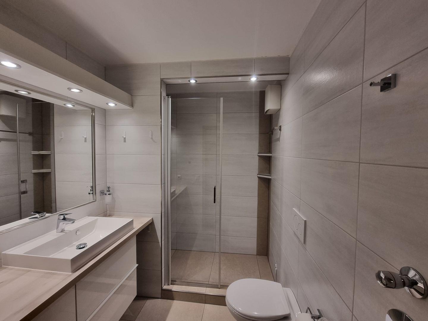 Das Appartement verfügt über ein Badezimmer mit WC, Waschbecken, Spiegel, Kosmetikspiegel, Haartrockner sowie einer Dusche mit Wanne inklusive Badewanne. Im Wohnbereich finden Sie außerdem praktische Ausstattung wie Garderobe, Schreibtisch, Sessel, Sofa und Kommode, dazu Ganzkörperspiegel, Wecker, Staubsauger, Bügelbrett und Bügeleisen. Waschmaschine und Trockner können gemeinschaftlich genutzt werden; ein Wäscheständer ist vorhanden. Für Sicherheit sorgt ein Feuermelder. Beheizt wird die Unterkunft über Zentralheizung.