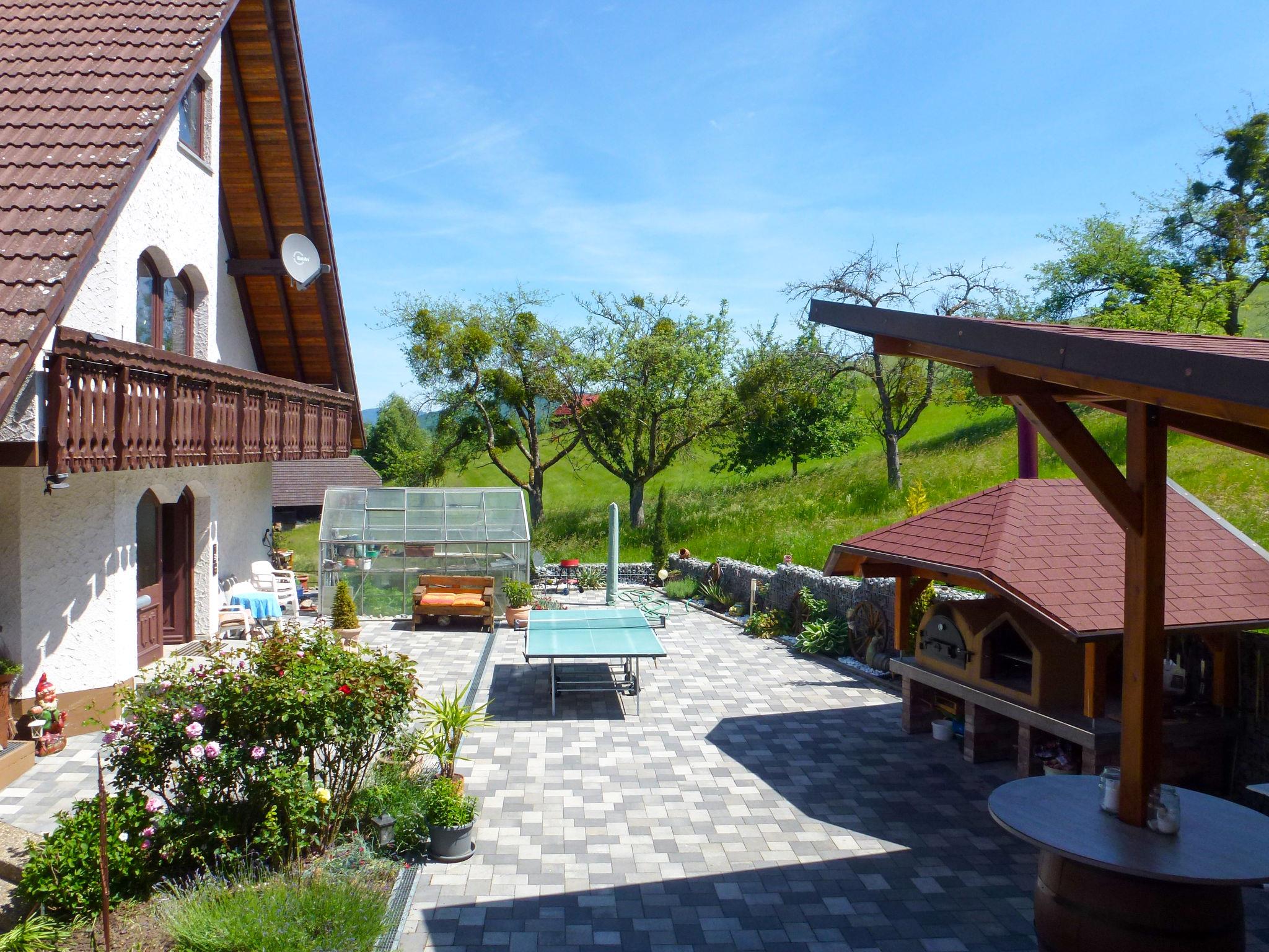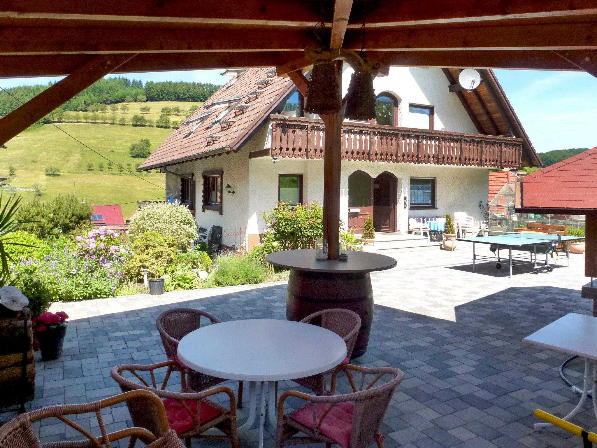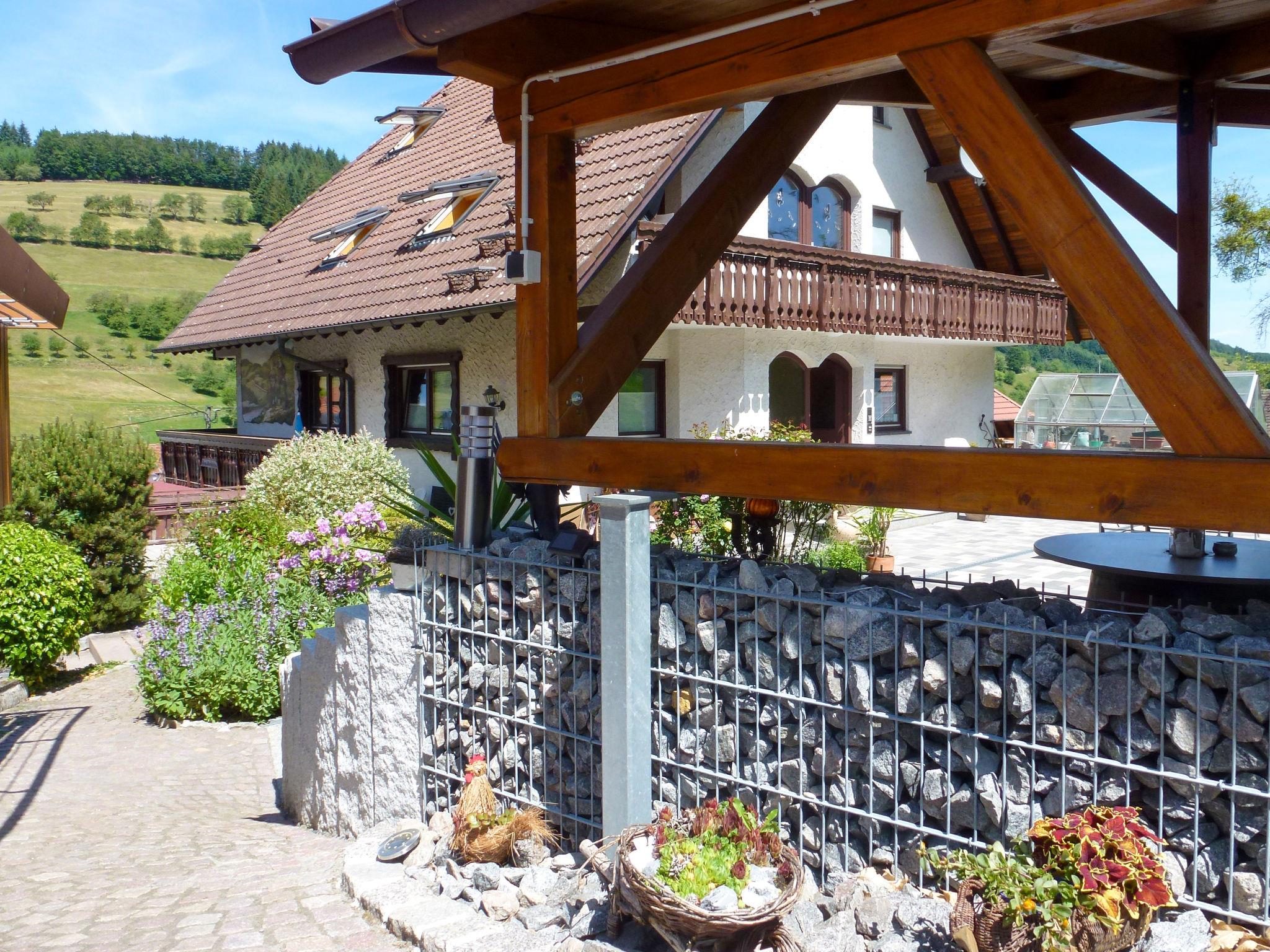 Apartment house "Pension Himmelsbach". In the district of Welschensteinach, on the outskirts, 4 km from the centre of Steinach, in a quiet, sunny, elevated position on a slope, in the countryside. For shared use: property, lawn for sunbathing, swimming pool (10 x 5 m, seasonal availability: 01.Jun. - 30.Sep.). Slide, table tennis, barbecue, children's playground. In the complex: lounge, billiard table, central heating system, washing machine (extra), tumble dryer (for shared use, extra). Stepped path (17 steps) to the house. Parking at the house. Shop 1 km, grocery 4 km, restaurant 1 km, bus stop 100 m, railway station "Steinach" 4 km, outdoor swimming pool 4 km, indoor swimming pool 4 km. Golf course (18 hole) 8 km, tennis 4 km, riding stable 1 km. Nearby attractions: Zeller Keramik 5 km, Altstadt Haslach 8 km, Freilichtmuseum Vogtsbauernhöfe 8 km. Well-known lakes can easily be reached: Mummelsee 35 km. Hiking paths: Kinzigtal 2 km. Use of the shared whirlpool on request. In the adjacent courtyard building, the house owner still runs a small part-time farm with goats.