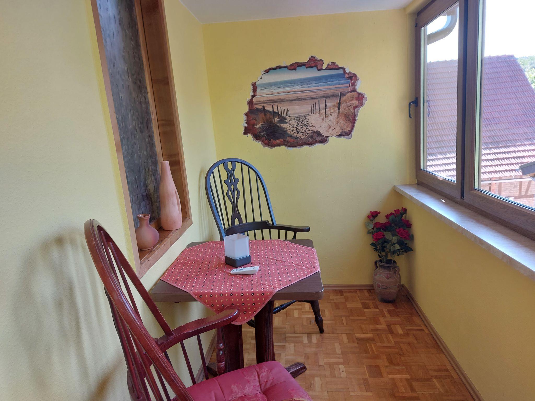 "Erna", 2-room apartment 70 m2 on 1st floor. Renovated in 2022, practical furnishings: large living/sleeping room with 1 sofabed, 1 fold-away bed, dining table and cable TV (flat screen). 1 room with 1 double bed and cable TV (flat screen). Kitchen (oven, dishwasher, 4 gas rings, toaster, kettle, electric coffee machine) with small dining table. Bath/shower/WC. Gas heating. Covered balcony, sitting area. Facilities: washing machine. Internet (WiFi, free). Parking (2 cars). Please note: non-smokers only. Smoke alarm, fire extinguisher.