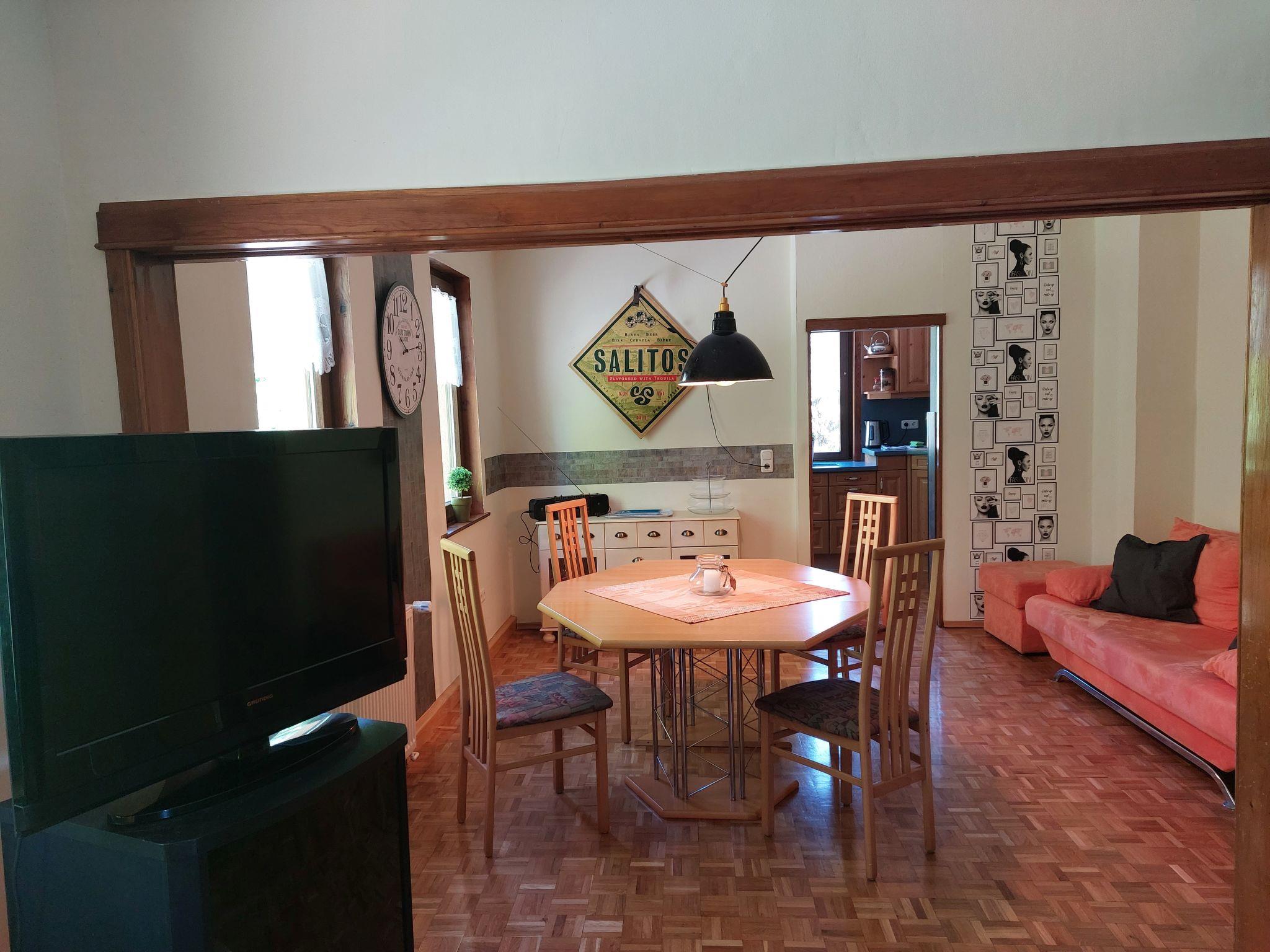 Apartment house. In the resort 1 km from the centre of Steinbach-Hallenberg, 15 km from the centre of Oberhof, 30 km from the centre of Meiningen, in a central position. For shared use: property, garden 40 m2. Shop 1 km, supermarket 1 km, restaurant 400 m, bus stop 280 m, railway station 350 m, outdoor swimming pool 1 km. Ski lift 15 km. Well-known ski regions can easily be reached: Oberhof 15 km.