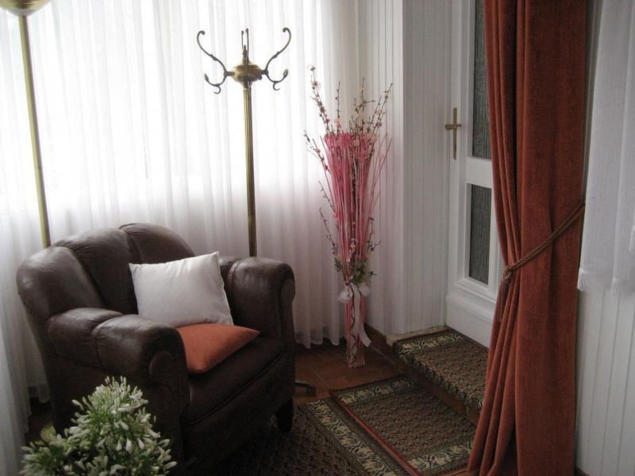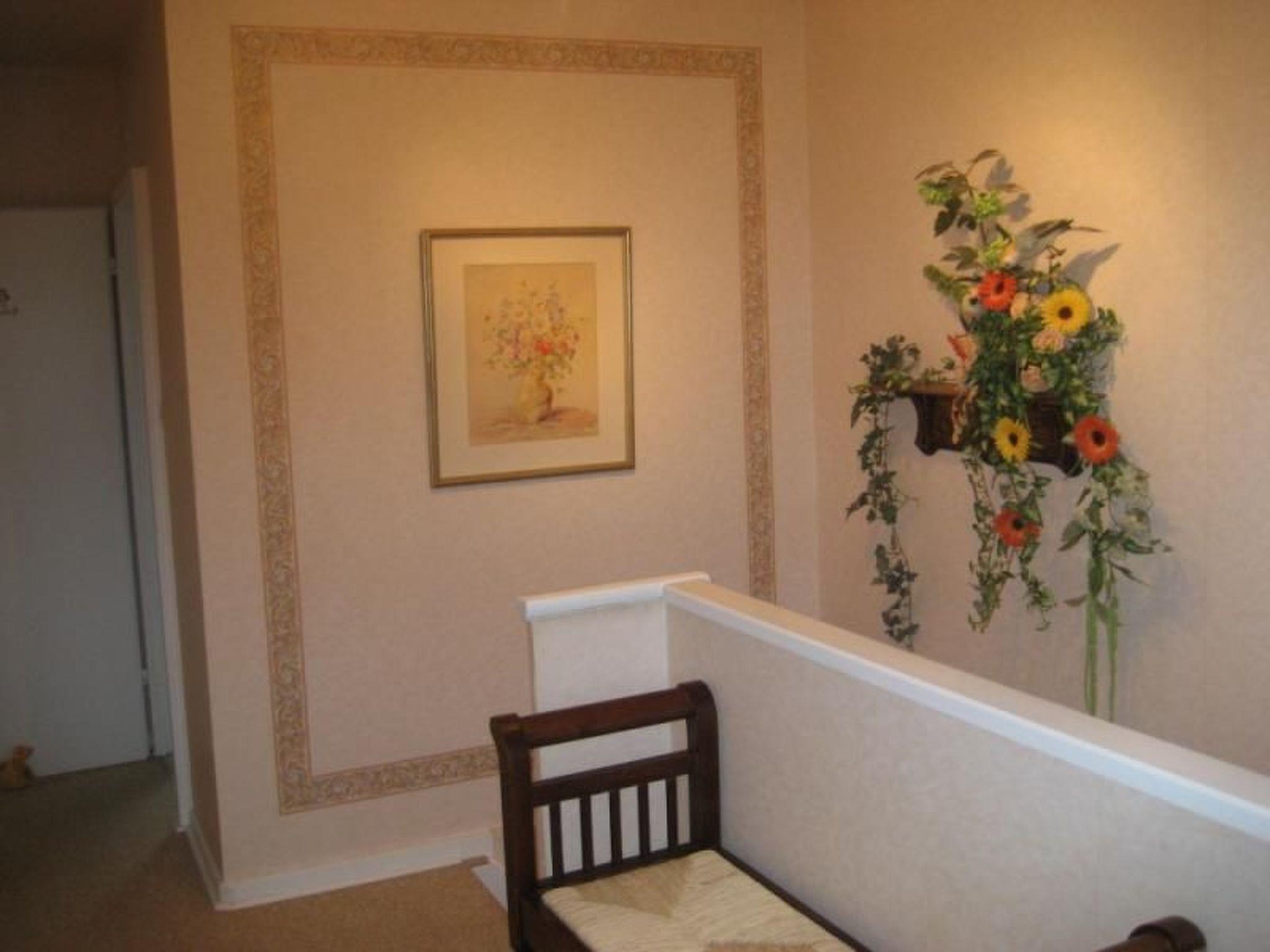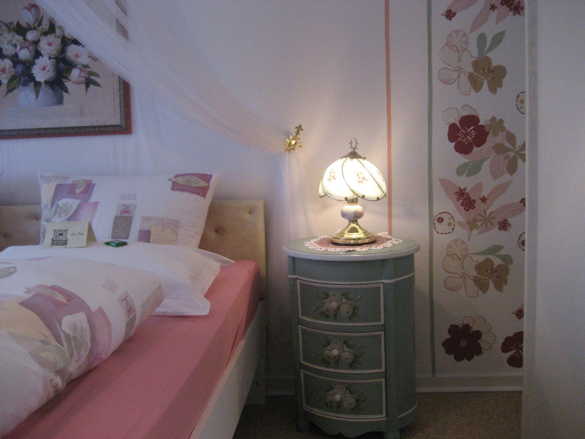 The ground floor has a living room with heating, a radio, cable TV, a suite and a dining table with four chairs. The kitchen includes a dining corner, an electric stove, an oven, fridge, microwave, coffee machine and other appliances. The ground floor also has a guest WC and a storage room. An ironing table, iron etc. are available. The upper floor comprises two bedrooms, one with two single beds (100 x 200cm, the other with two single beds (100 x 200cm) one behind the other. The bathroom is fitted with a bath and a shower screen, a washing machine and dryer. A child’s bed, bed linen and towels are available. Smoking is not permitted in the apartment. Wireless Internet access is available throughout the apartment. The owner lives in the building next door.