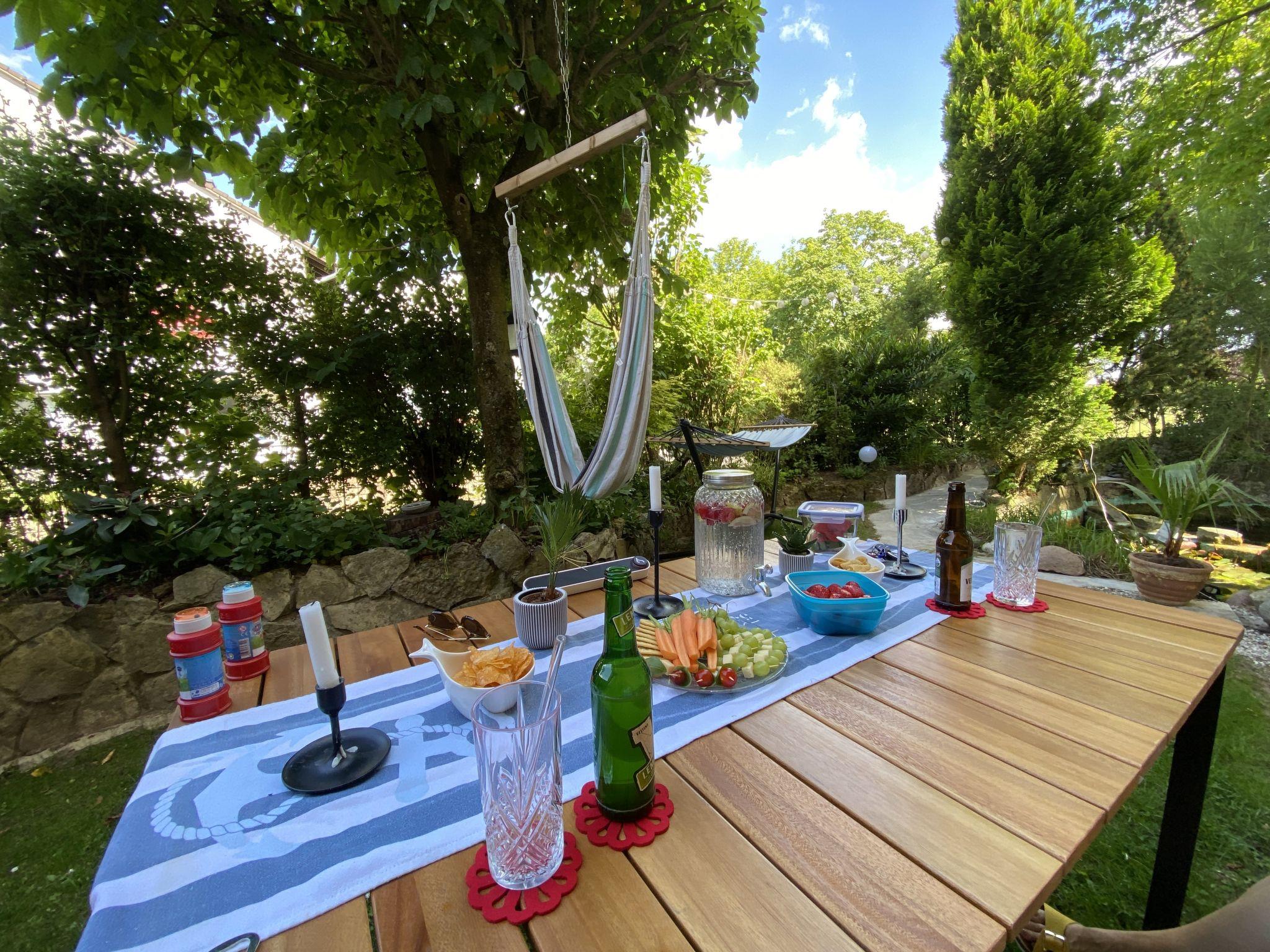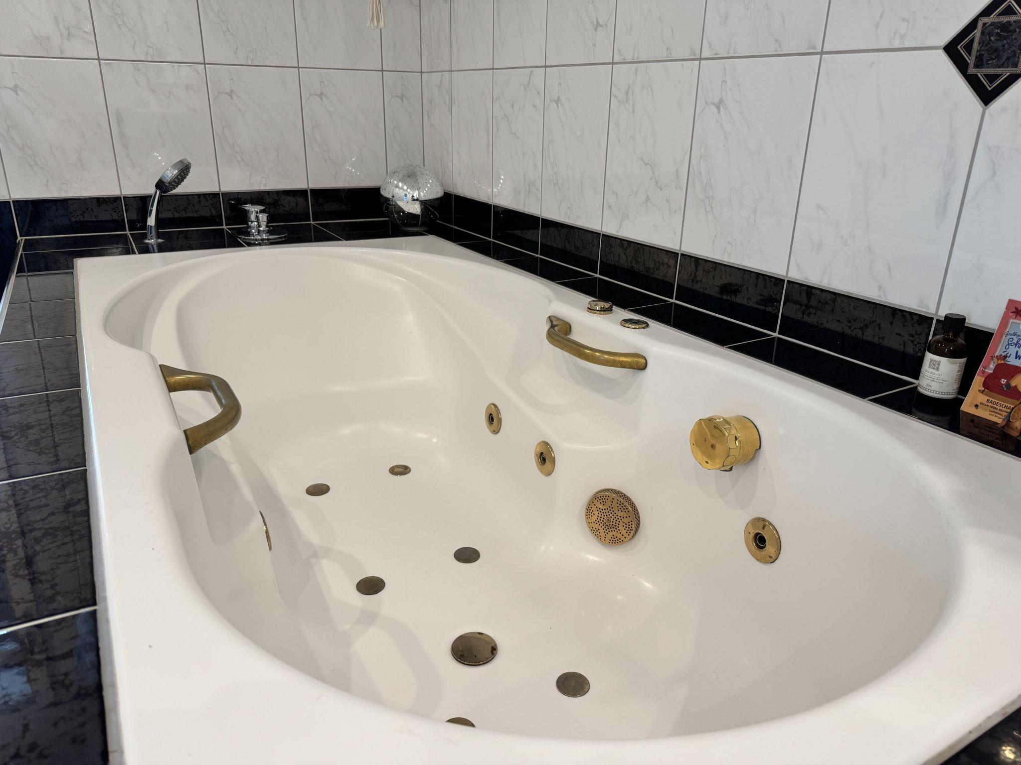 "Feli", 2-room apartment 60 m2, on the ground floor. Renovated in 2022: living room with satellite TV (flat screen). Exit to the garden. 1 room with 1 double bed (2 x 100 cm, length 200 cm). Exit to the garden. (oven, dishwasher, 4 ceramic glass hob hotplates, toaster, kettle, microwave, freezer, electric coffee machine) with dining table. Bath/shower/WC, double hand-basin, hydro massage bath. Oil heating. Patio. Terrace furniture, deck chairs (1). Facilities: children's high chair, baby cot, hair dryer. Internet (WiFi, free). Please note: non-smokers only. Maximum 1 small pet/ dog allowed. Smoke alarm, fire extinguisher. Use of the hot tub bath is available for a fee of €6 per use.