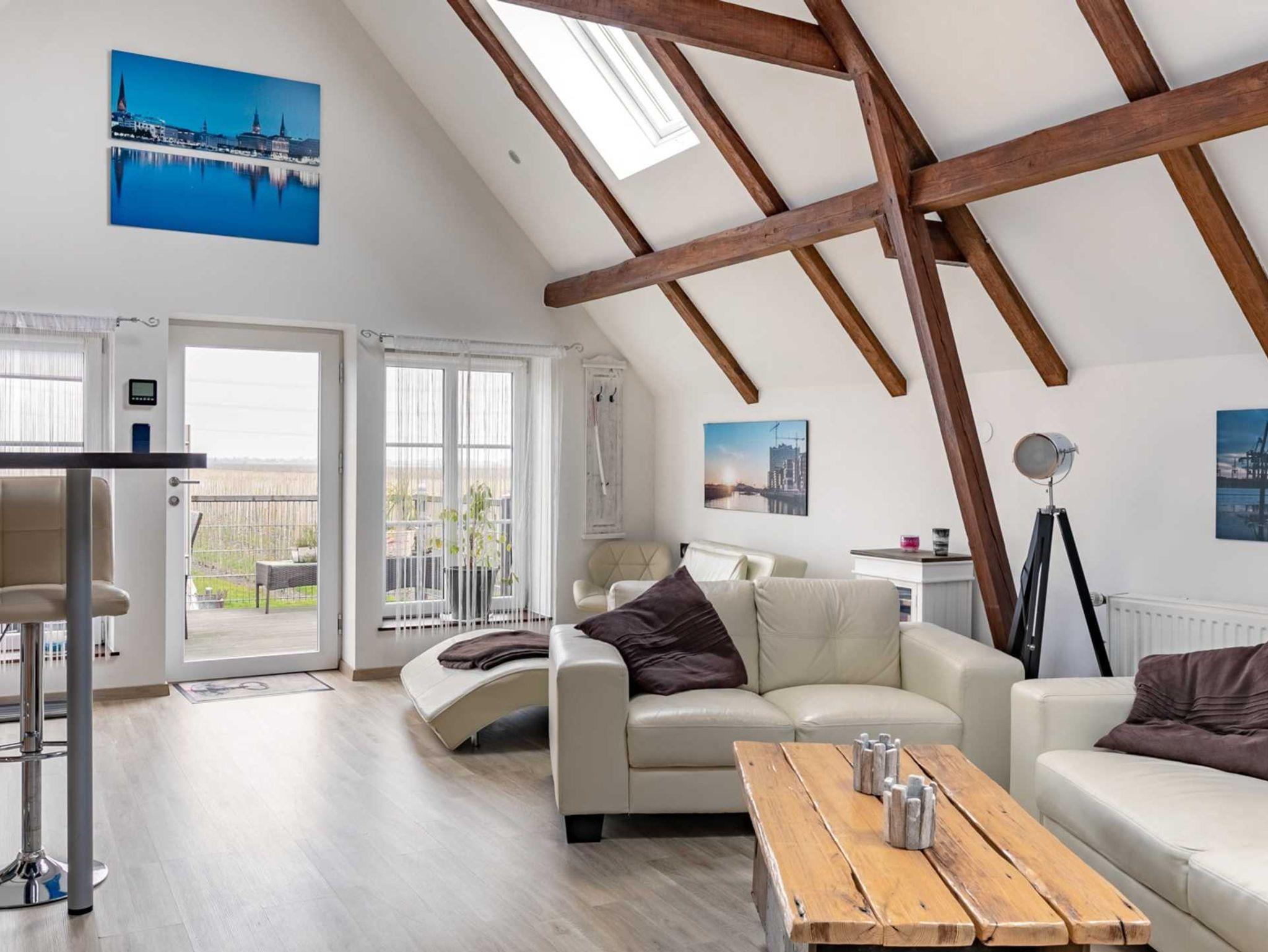 Diese Wohnung verfügt über eine sehr großzügige Raumaufteilung mit einem großen Wohn.- Küchenbereich und zwei Schlafzimmer. Ein Schlafzimmer verfügt über wahlweise einem Doppelbett oder zwei Einzelbetten. Das zweite Schlafzimmer verfügt über ein Einzelbett und zweites in einem höherliegenden Loft. Die Küche ist für 4 Personen komplett ausgestattet. Ferner ist ein 55 Flachbildfernseher mit Satanschluss, sowie eine Stereoanlage mit CD/DVD Player installiert. Auch in dieser Wohnung stellen wir einen kostenfreien Wlan Anschluss zur Verfügung. Zur Wohnung gehört zudem ein 12 m² großer Balkon mit Rattansitzgruppe und Blick über Obstplantagen bis zur Elbe.