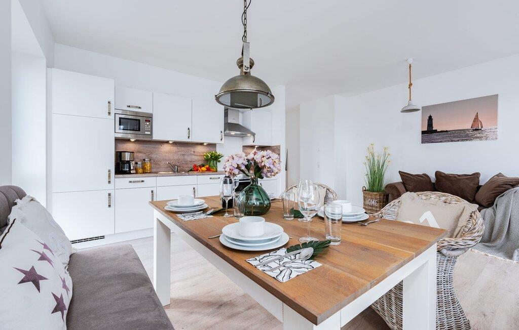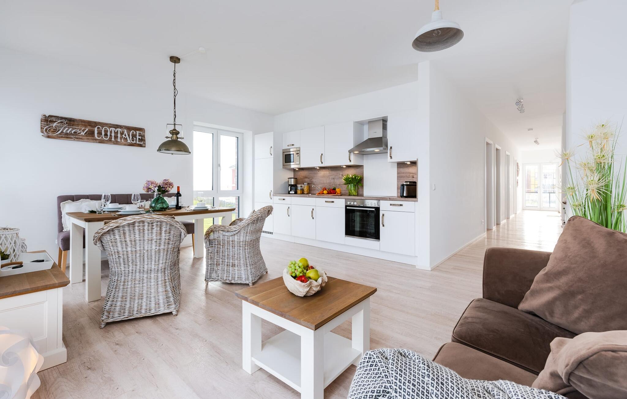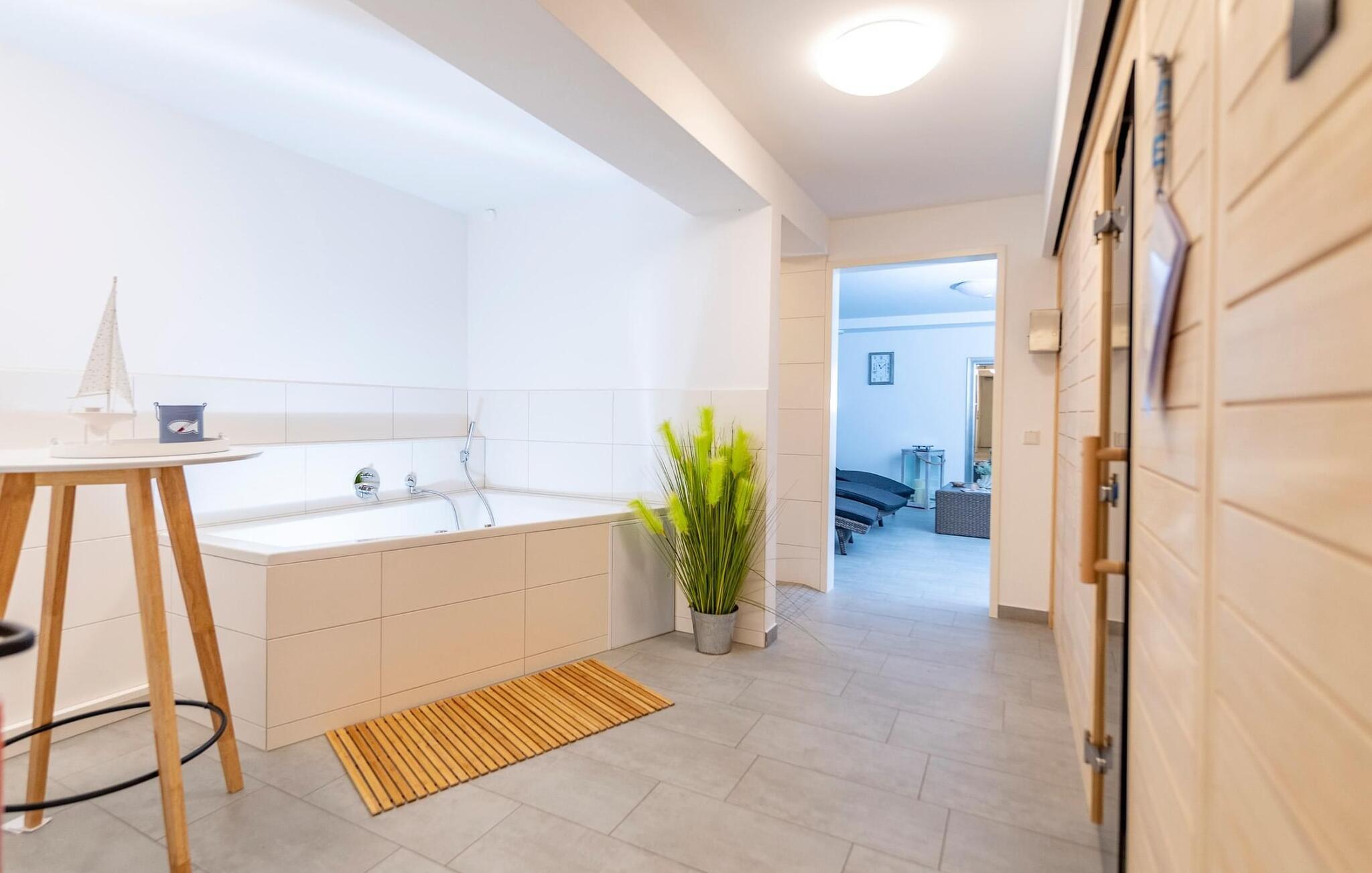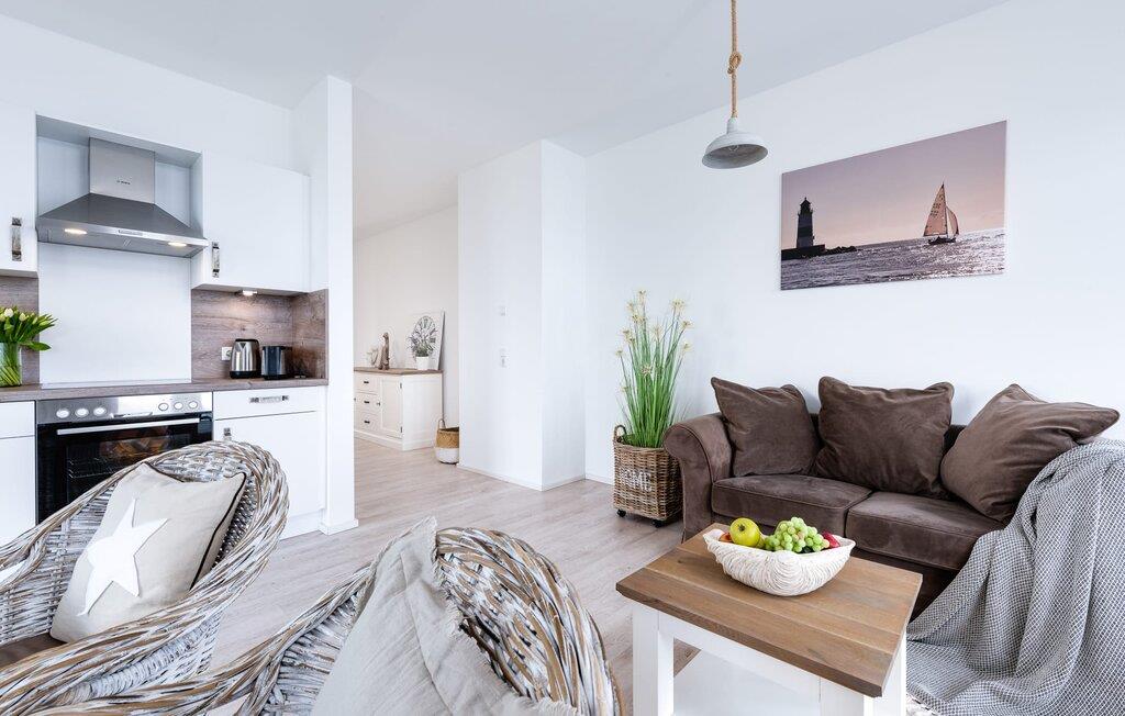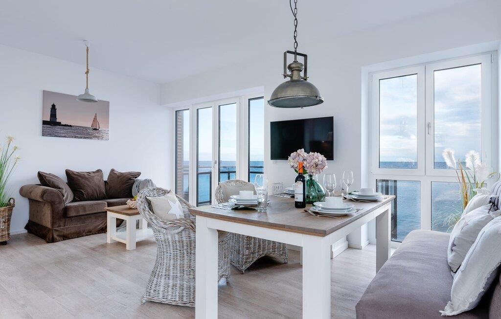 Alene adressen PÅ Østersøen viser, at denne ferielejlighed er noget helt særligt. Har I nogensinde boet eller sovet PÅ Østersøen? Undtagen på et skib? I vil opleve det på denne feriebolig! Denne rummelige og lyse lejlighed ligger på et smalt næs, der strækker sig ud i Østersøen. Når I ankommer, vil I finde en privat parkeringsplads og en elevator i huset, som vil tage jer og jeres bagage ubesværet til ferielejligheden. Ved opsætningen blev der lagt stor vægt på kvalitet og subtile farver. I finder jeres ferieparadis i elegant gråt og hvidt parret med naturlige nuancer, der kan findes i den hyggelige sofa, de komfortable kurvestole, spisebordsbænken og boxmadrasserne. Et lille New Hampshire i Olpenitz! Der er to soveværelser til rådighed, et med og et uden balkon. Begge har dobbelt boxmadrasser og er indrettet i sommerhusstil. LEVE LIN KÆRLIGHED er ikke svært her! Da der er et komplet badeværelse med badekar og et gæstebadeværelse med bruser, som begge skinner i blank hvid, er der ingen trafikprop om morgenen, selvom der er fire personer i lokalet. Og vil I blive lidt mere våd, er der et wellnessområde i kælderen med finsk møntdrevet sauna og spabad. Bemærk venligst: OstseeResort Olpenitz er meget populært, og der bygges fortsat i parken. Ikke desto mindre kan I se frem til en 5-stjernet standard og et førsteklasses ophold. Byggeaktiviteterne kommer ikke til at forstyrre jer på ferien, og derfor gives der ikke yderligere afslag i prisen.