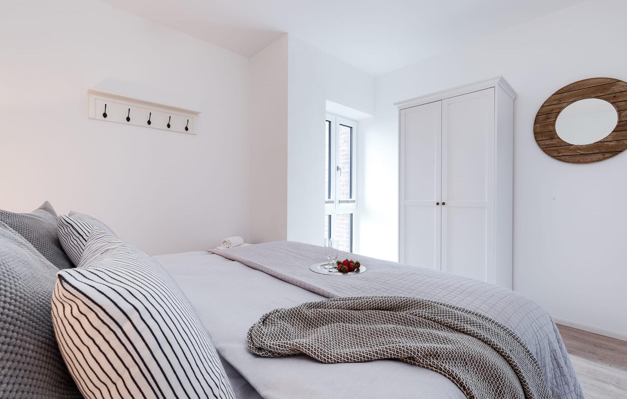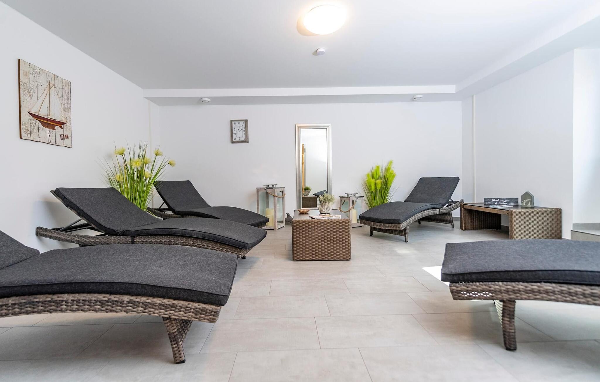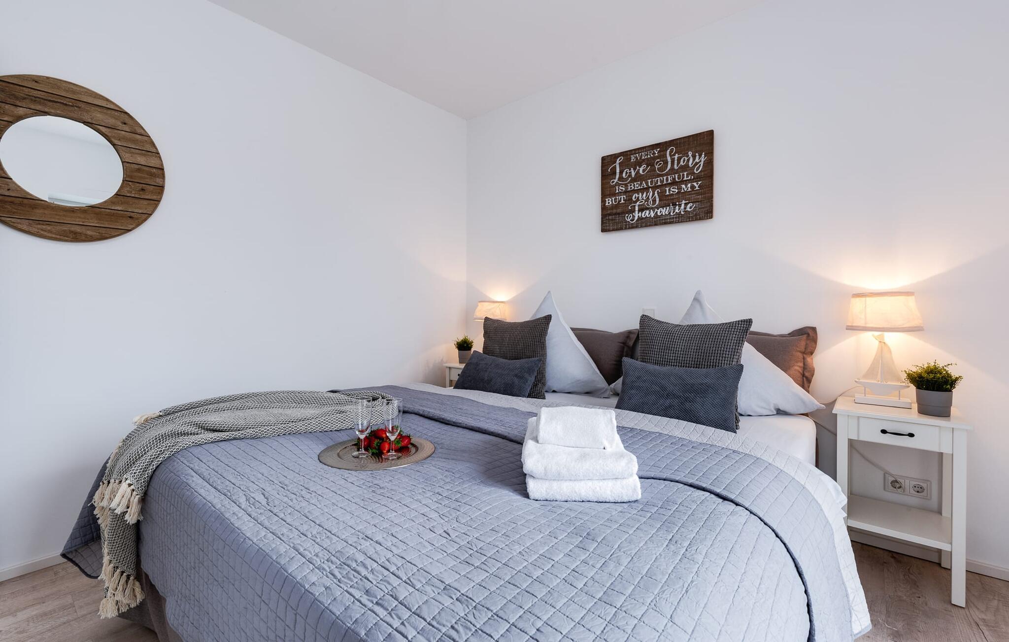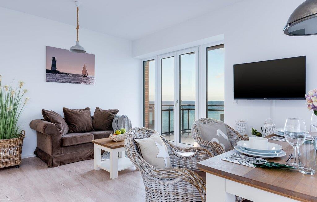 Alene adressen PÅ Østersøen viser, at denne ferielejlighed er noget helt særligt. Har I nogensinde boet eller sovet PÅ Østersøen? Undtagen på et skib? I vil opleve det på denne feriebolig! Denne rummelige og lyse lejlighed ligger på et smalt næs, der strækker sig ud i Østersøen. Når I ankommer, vil I finde en privat parkeringsplads og en elevator i huset, som vil tage jer og jeres bagage ubesværet til ferielejligheden. Ved opsætningen blev der lagt stor vægt på kvalitet og subtile farver. I finder jeres ferieparadis i elegant gråt og hvidt parret med naturlige nuancer, der kan findes i den hyggelige sofa, de komfortable kurvestole, spisebordsbænken og boxmadrasserne. Et lille New Hampshire i Olpenitz! Der er to soveværelser til rådighed, et med og et uden balkon. Begge har dobbelt boxmadrasser og er indrettet i sommerhusstil. LEVE LIN KÆRLIGHED er ikke svært her! Da der er et komplet badeværelse med badekar og et gæstebadeværelse med bruser, som begge skinner i blank hvid, er der ingen trafikprop om morgenen, selvom der er fire personer i lokalet. Og vil I blive lidt mere våd, er der et wellnessområde i kælderen med finsk møntdrevet sauna og spabad. Bemærk venligst: OstseeResort Olpenitz er meget populært, og der bygges fortsat i parken. Ikke desto mindre kan I se frem til en 5-stjernet standard og et førsteklasses ophold. Byggeaktiviteterne kommer ikke til at forstyrre jer på ferien, og derfor gives der ikke yderligere afslag i prisen.