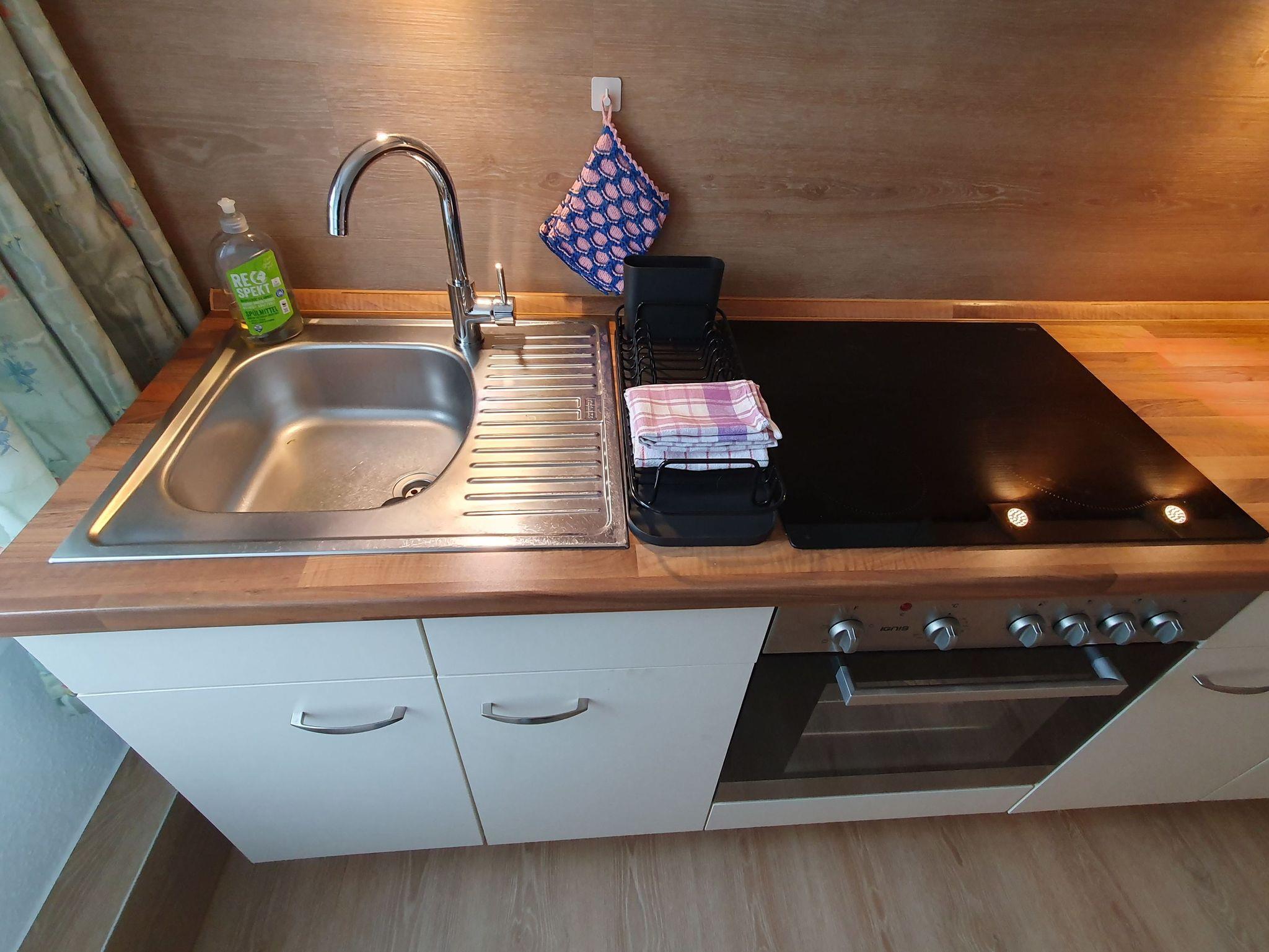 Im gemütlichen Wohnzimmer können Sie sich entspannen und die Zeit mit einem Fernsehabend genießen. Das Schlafzimmer ist mit einem komfortablen Doppelbett und Schlafsessel ausgestattet, das Ihnen erholsame Nächte garantiert. Die voll ausgestattete Küche lädt dazu ein, Ihre Lieblingsgerichte zuzubereiten.