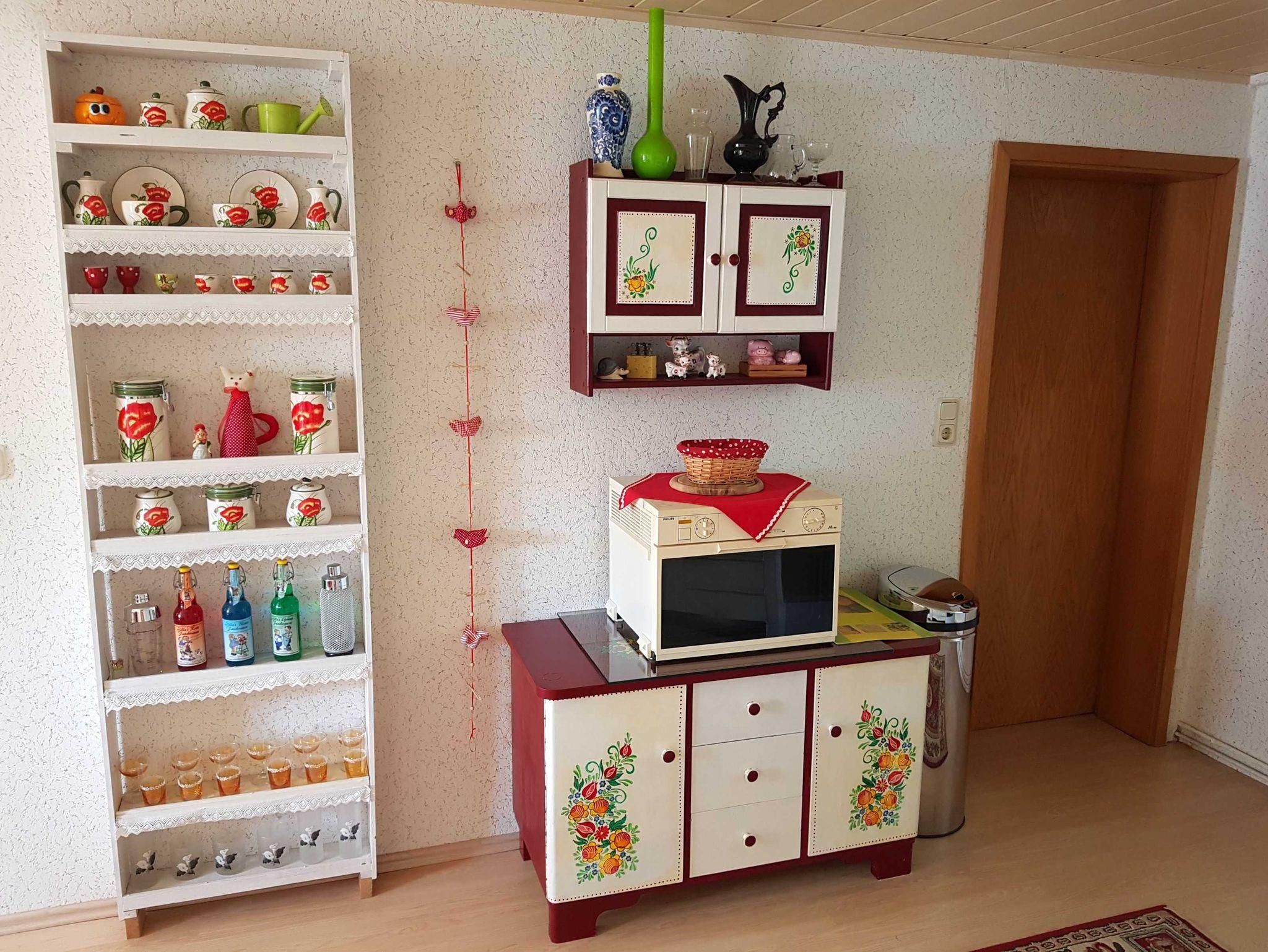 Das Wohnzimmer ist hell und sehr großzügig, mit Couchecke, Schrankwand und Essecke mit fantastischem Blick auf den See. Die offene Küche zum Wohnbereich hat alles, was man zum Kochen benötigt (Herd mit Backofen, Mikrowelle, Kühlschrank mit Gefriermöglichkeit, Wasserkocher, Toaster und Geschirr).