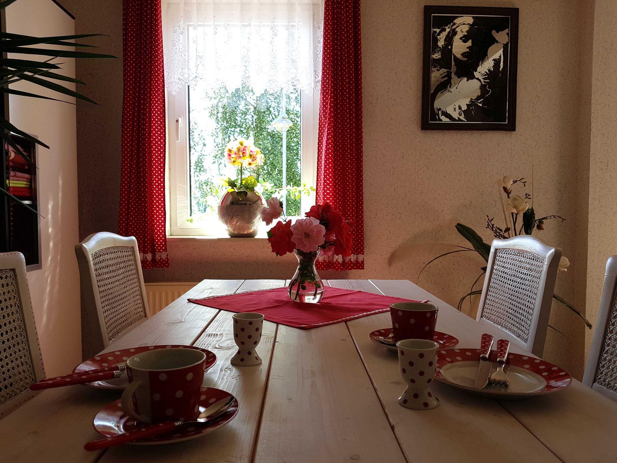 Zur Ferienwohnung gehört ein kleiner, idyllischer Garten. Verschiedene Sitzbereiche und ein Grill laden zum Verweilen ein.