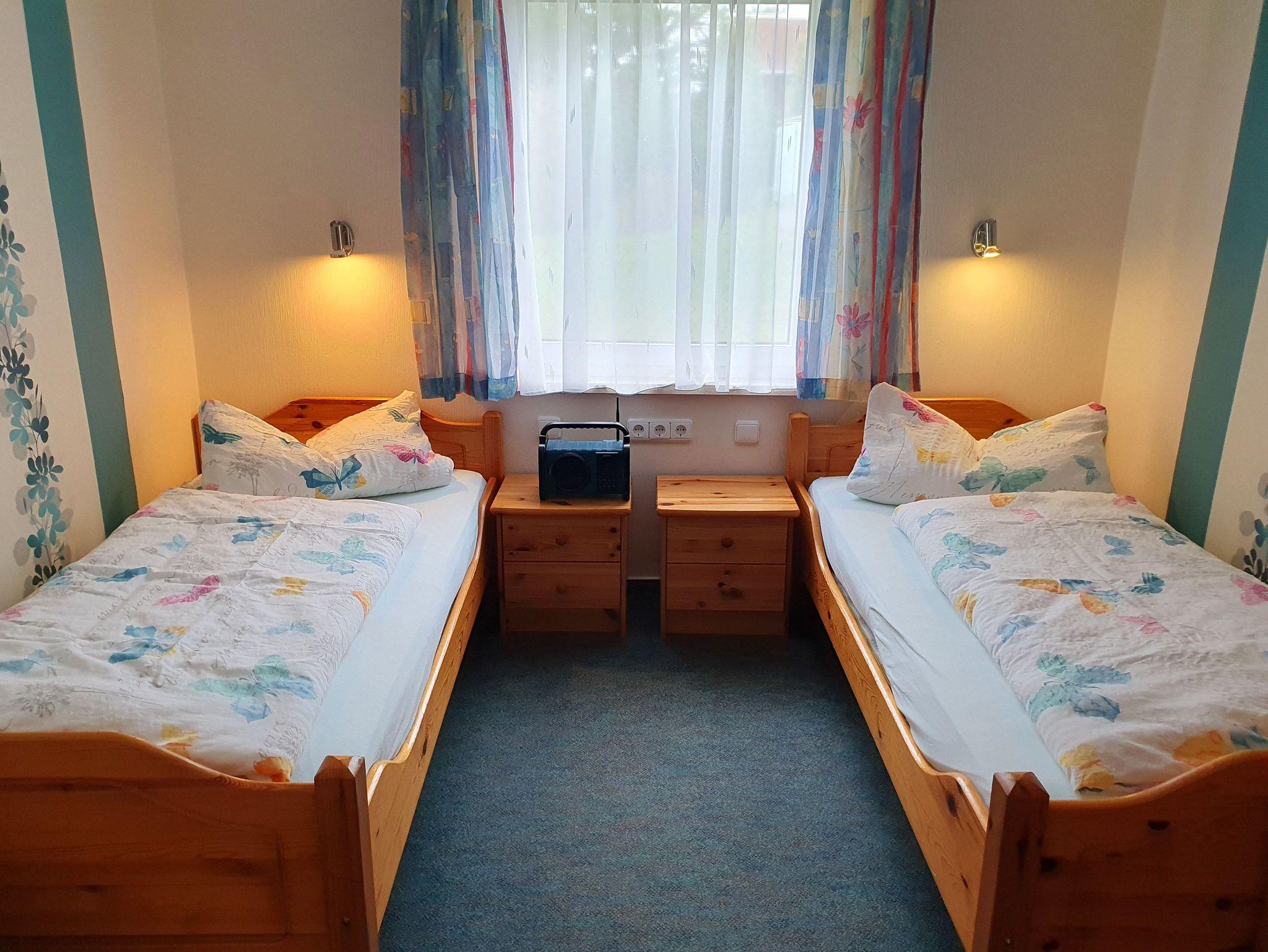 Es gibt zwei getrennte Schlafzimmer, eins mit Doppelbett, das andere mit zwei Einzelbetten sorgen für einen angenehmen Schlafkomfort. Alle Betten haben eine Höhenverstellung am Kopfende. Kissen, Betten, Bettwäsche und Handtücher sind vorhanden.