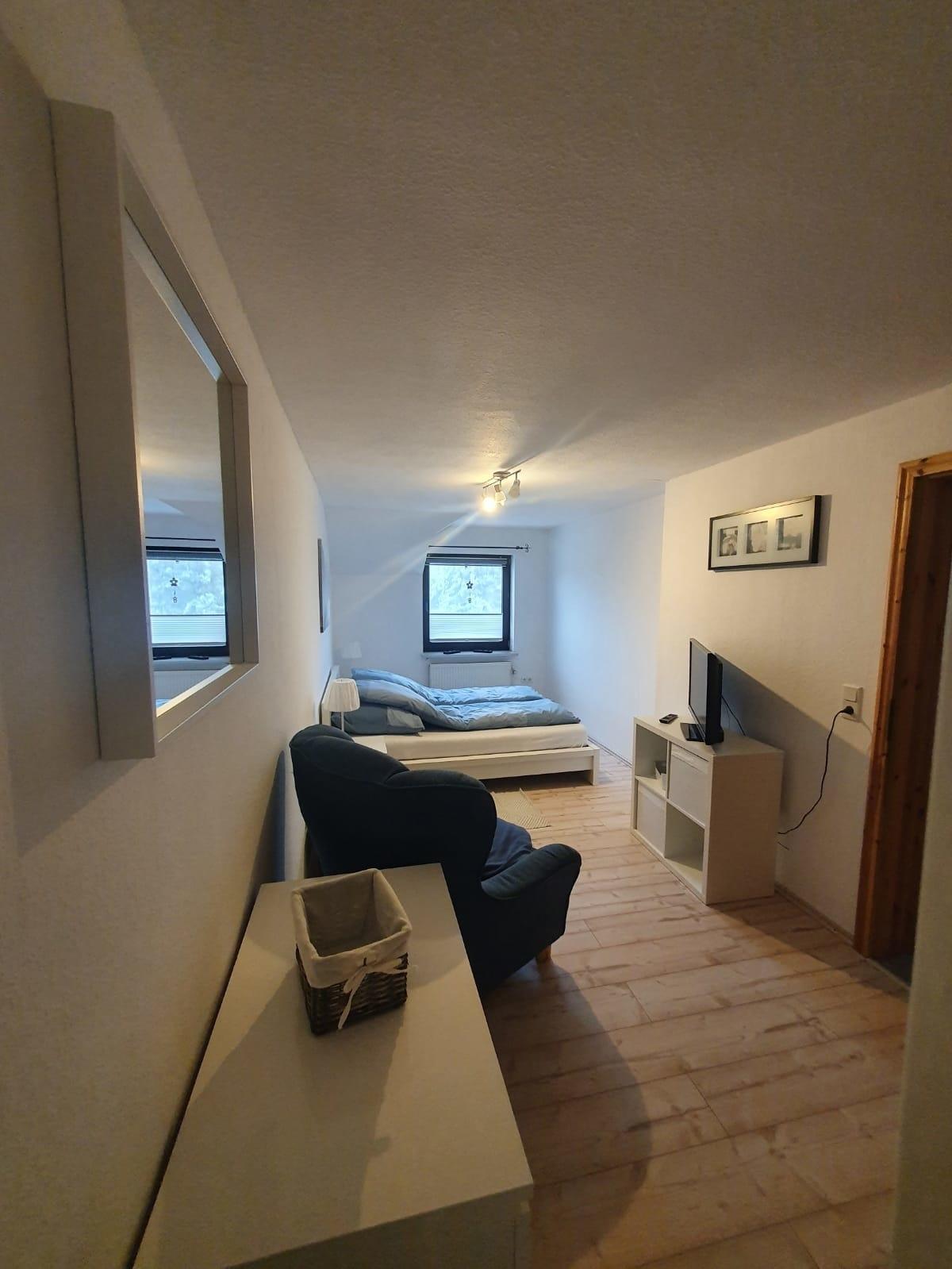 Die wunderschöne Ferienwohnung ist mit ca. 75m² recht großzügig für 2 Personen geschnitten. Das Wohnzimmer ist sehr hell, besitzt einen Essbereich und einen sehr gemütlichen Fernsehbereich. Vom Wohnzimmer aus kommt man direkt auf den Balkon, der an schönen Sommerabenden zum Draußensitzen einlädt. Das Schlafzimmer ist mit einem 1,60x2,00 m Bett, einem Fernseher und genügend Lagerfläche für Kleidung eingerichtet. Die Küche verfügt über alle nötigen Elektrogeräte, die für den täglichen Bedarf wichtig sind. Das Badezimmer bietet eine großzügig Dusche. Außerdem ist in der Ferienwohnung eine Waschmaschine vorhanden. Handtücher und Bettwäsche, sowie schnelles Internet und ein Parkplatz direkt vor der Tür sind inklusive.