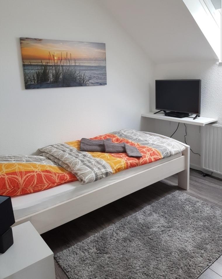 Im Schlafzimmer befindet sich ein Doppelbett inkl. Kleiderschrank und TV. Ein weiteres Zimmer, welches ebenfalls über ein Bett und TV Anschluss verfügt, befindet sich gleich nebenan. Ein modernes kleines Badezimmer mit Dusche und Handtuchnutzung steht euch selbstverständlich auch zu Verfügung.