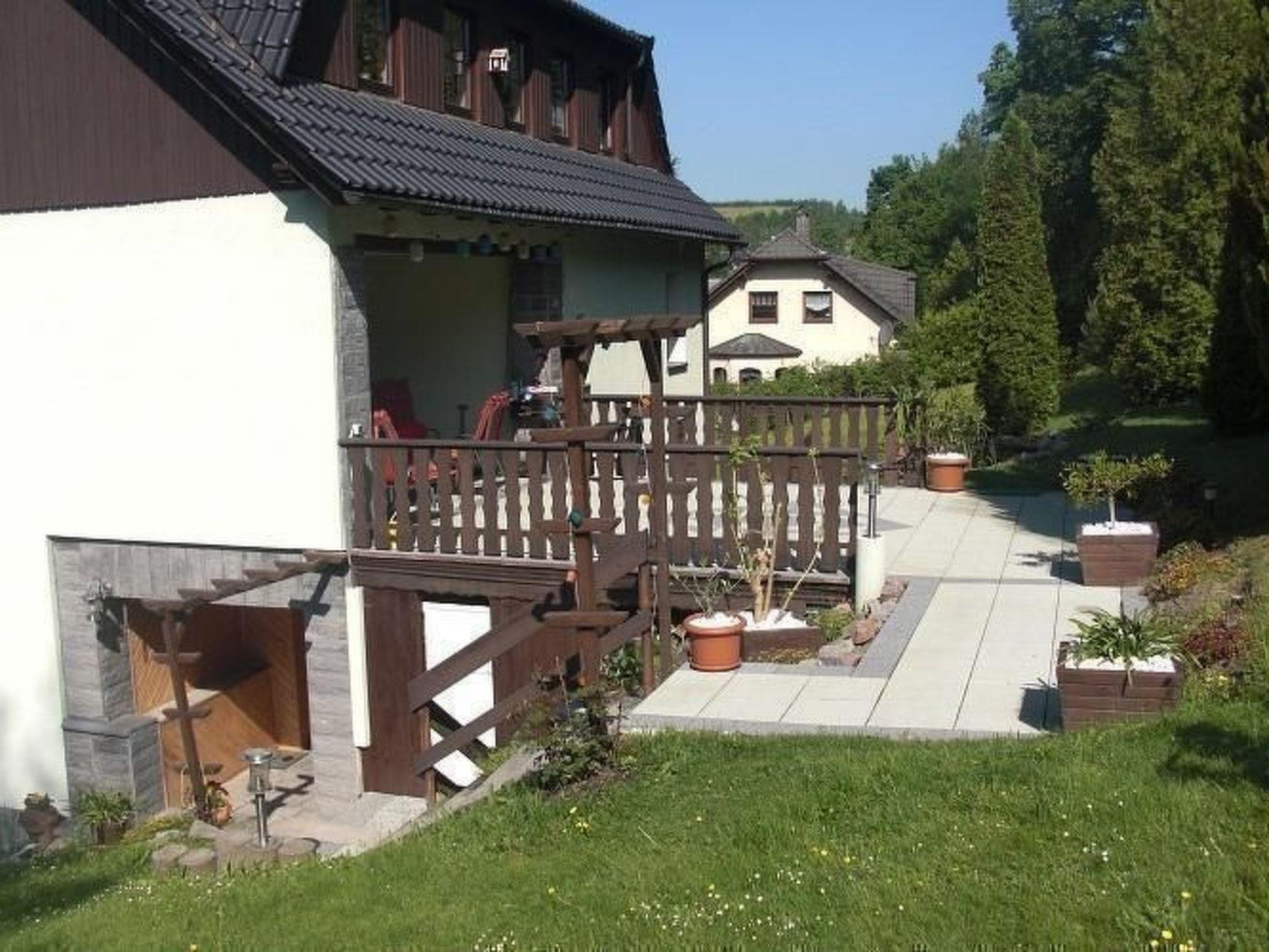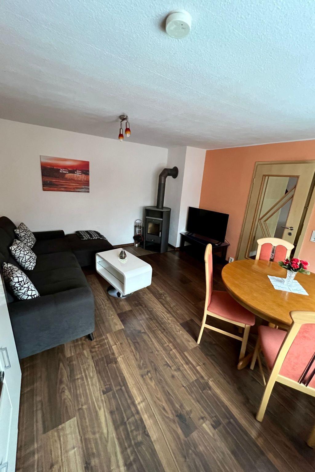 The holiday flat is ideal for hikers, the forest is only 3 minutes away. A small restaurant is 100 metres away. The flat and terrace can be reached via stairs and are therefore not suitable for people with walking difficulties. For winter sports enthusiasts there are ski lifts and cross-country ski trails in the region. A small ski slope is located approx. 100 metres from the house. An adventure playground is about 200 metres away. There are many places of interest in the immediate and wider surroundings, such as museums, show mines, Erzgebirge art etc. The city railway takes you to Chemnitz in 25 minutes. Dresden, Leipzig and Oberwiesental can be reached by car in about an hour. An adventure pool is located 6 km away in Thalheim and 12 km away in Geyer. There are thermal baths in Bad Schlema and Bad Wolkenstein.