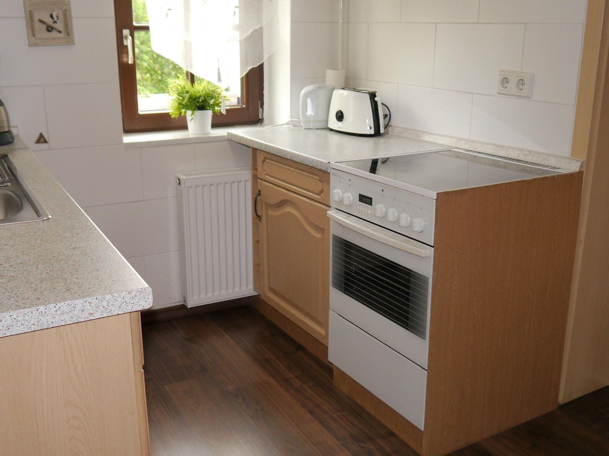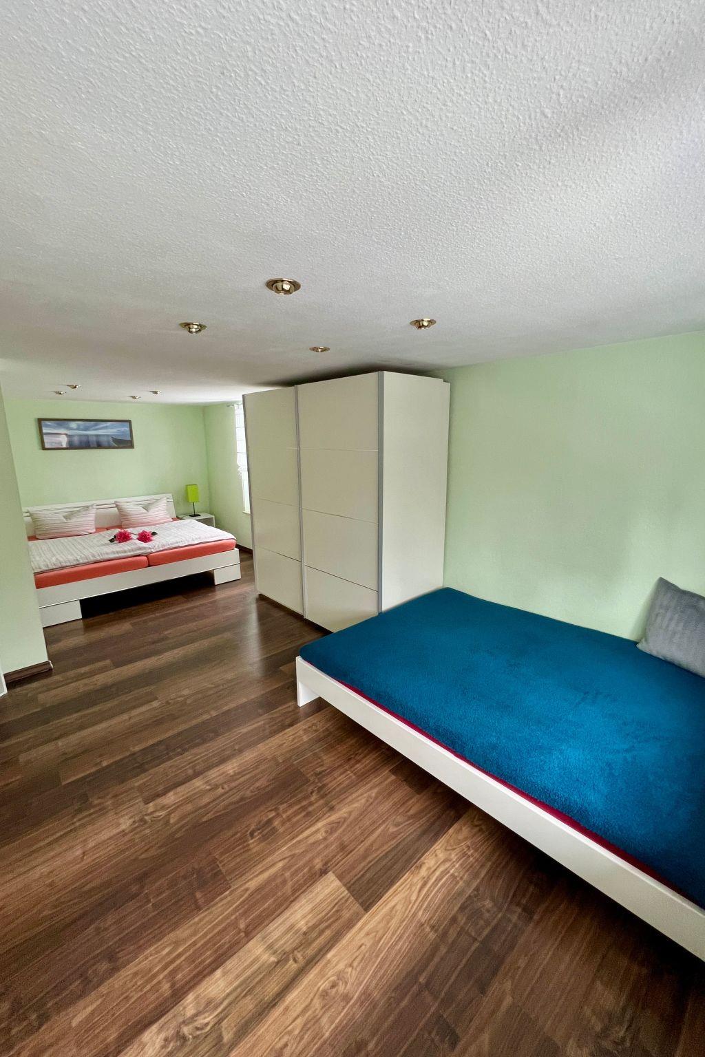 The cosy holiday flat is divided into a living room with dining table, corner sofa, an oven as well as cable TV and WiFi, the bathroom is equipped with a shower and bathtub, in the kitchen there is a cooker with ceramic hob including oven as well as a fridge with freezer compartment and coffee machine. In the hallway there is a wardrobe, the bedroom is equipped with 2 beds and a double bed to pull out as well as a wardrobe. The holiday flat is suitable for two adults with up to two children.