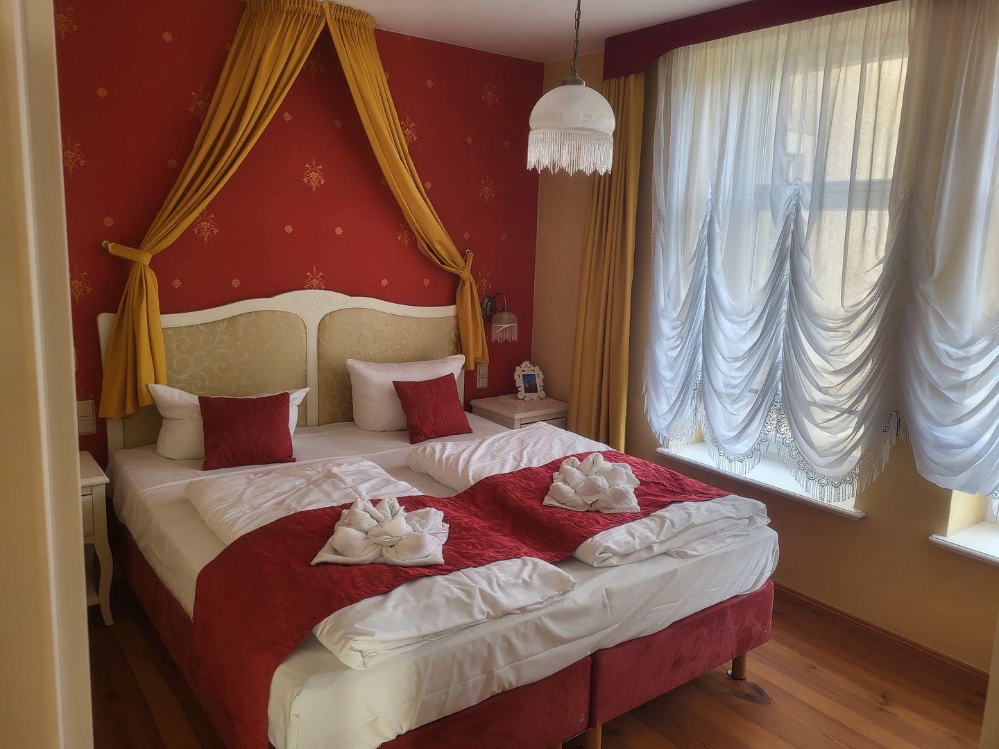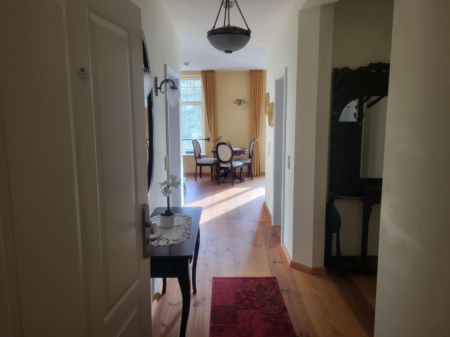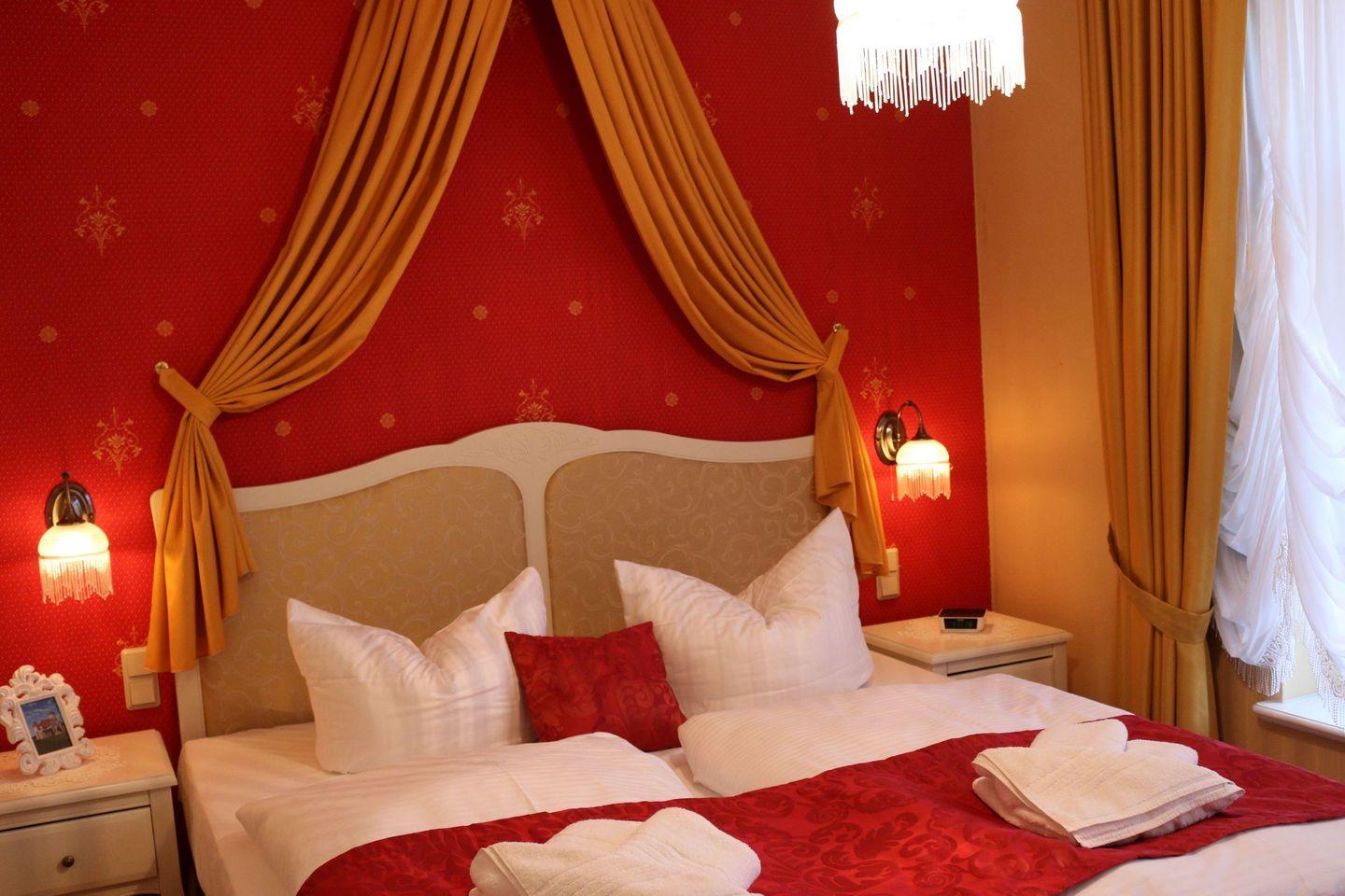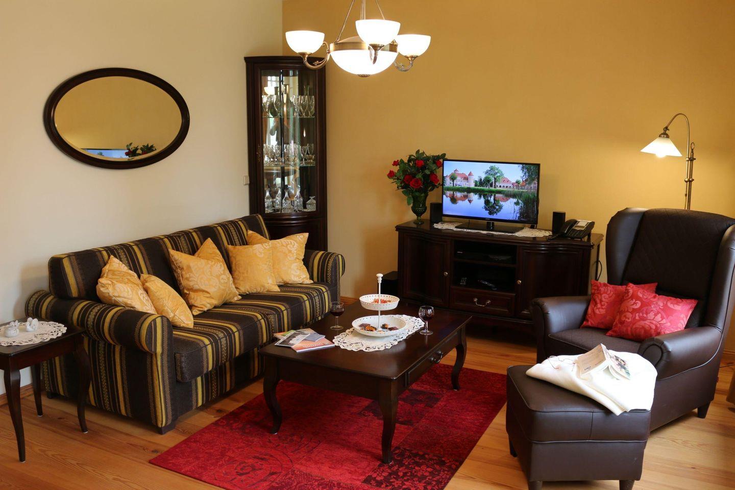 Schlafzimmer und Wohn-/ Essbereich, eingerichtet im Stil der Gründerzeit und doch mit modernem Komfort, vermitteln den besonderen Charakter und erinnern an ein Leben im Schloss.