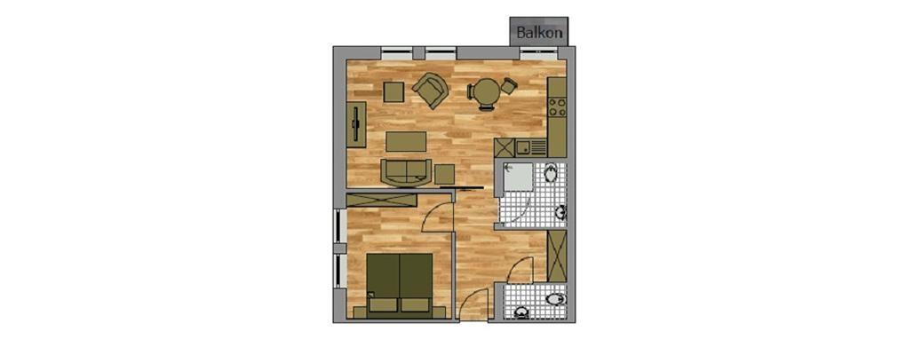 2 Zimmerappartement, für 2-3 Personen, 1 Schlafzimmer mit Komfortdoppelbett, 1 Schlafcouch im Wohnbereich, Bad mit Dusche, Fön, Gäste- WC, offene Küche mit Geschirrspüler, modern-historische Einrichtung, kleiner Südbalkon, Lift, Fernseher, WLAN, Mückengitter, Parkplatz