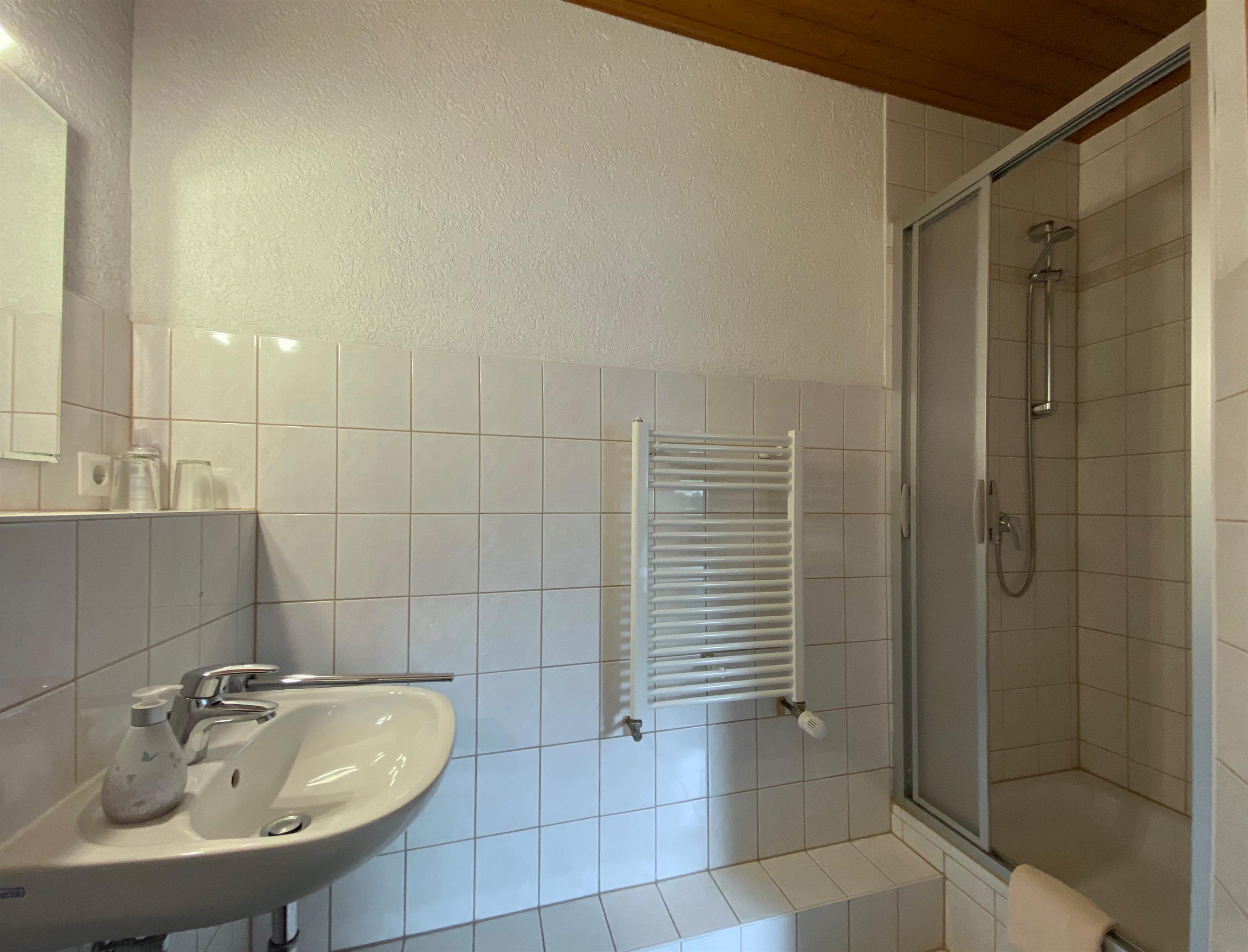 Das gemütliche Zimmer mit Dachschräge und liegendem Dachfenster befindet sich über der Gaststube im 2. Obergeschoss unserer Bauernwirtschaft.