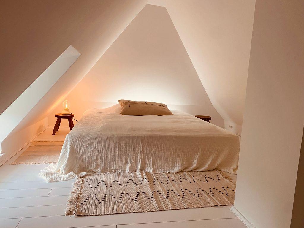 Im Obergeschoss mit den gemütlichen Dachschrägen gibt es zwei weitere Schlafzimmer (jeweils 2x 90x200cm) mit schönem Ausblick in den Garten und über die angrenzenden Felder.