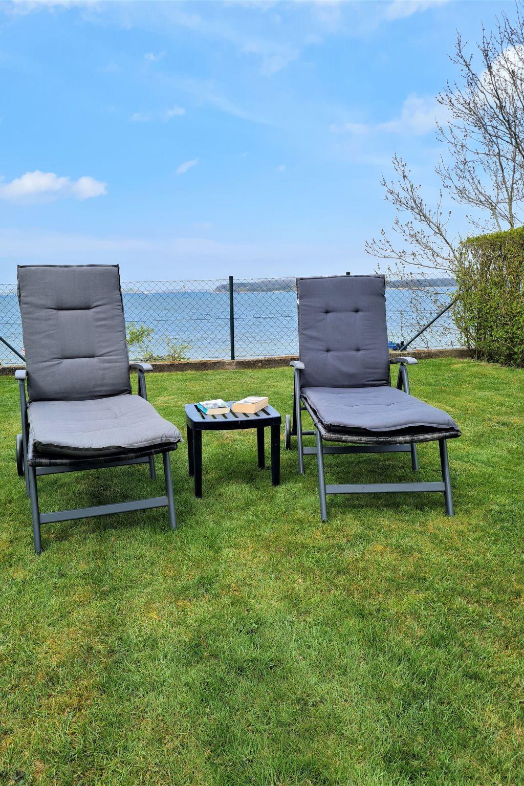 The outdoor area invites you to linger and enjoy a sunny terrace, comfortable garden furniture and a charcoal barbecue. In the communal garden, you can relax on the sun loungers and let your gaze wander over the picturesque landscape as far as the island of Rügen. The steps belonging to the accommodation lead you directly to the beach, where you can spend unforgettable days by the sea.