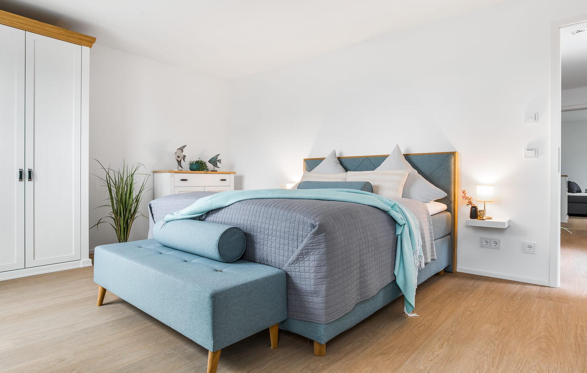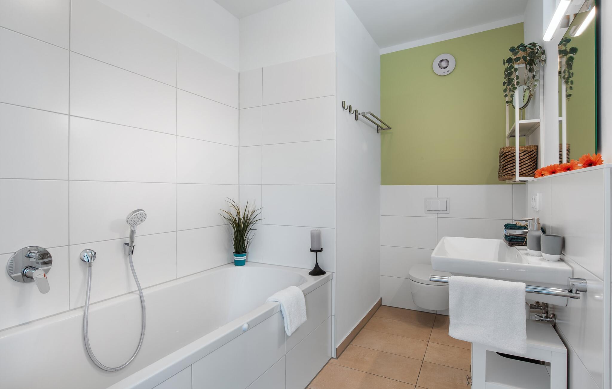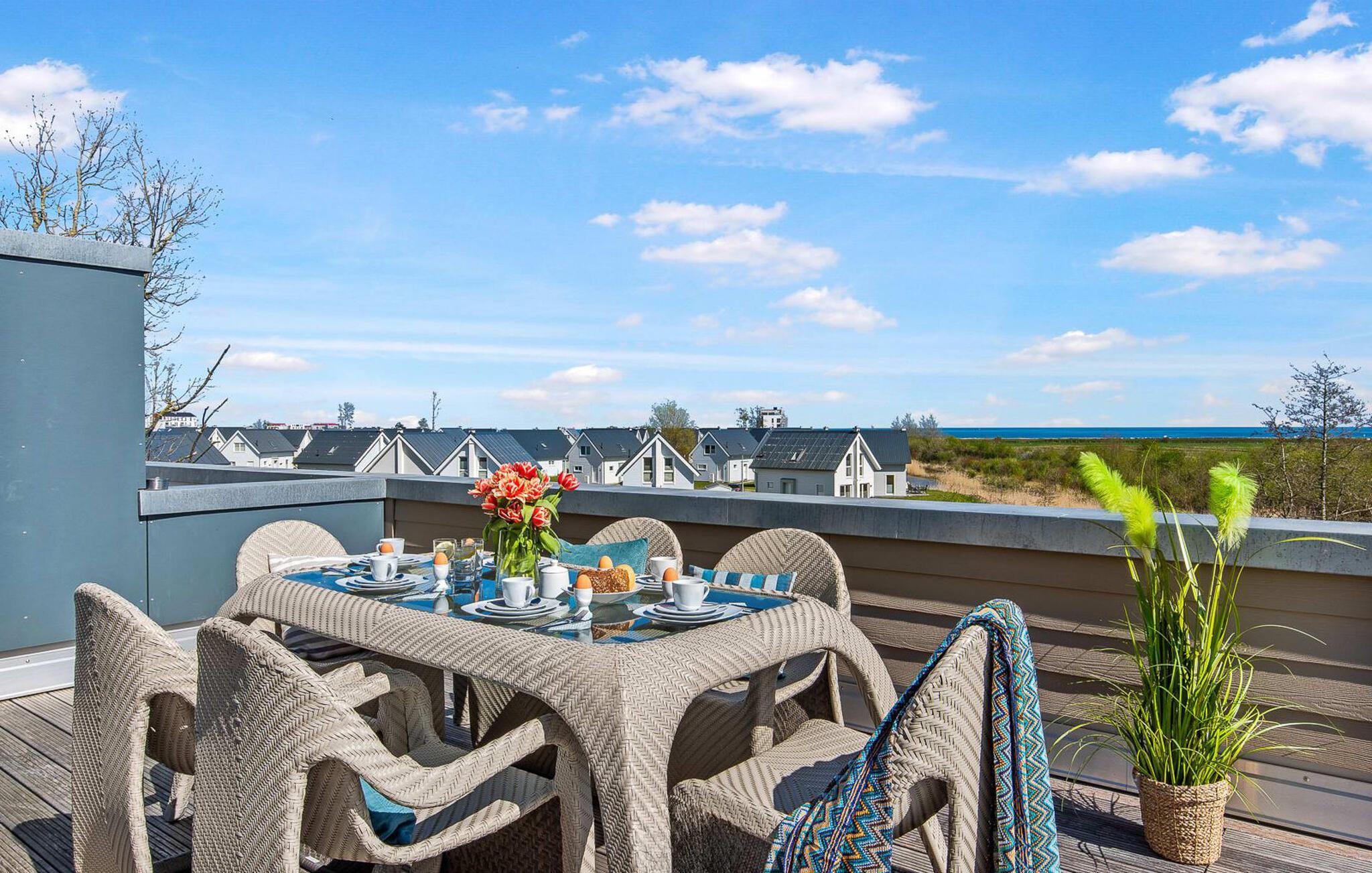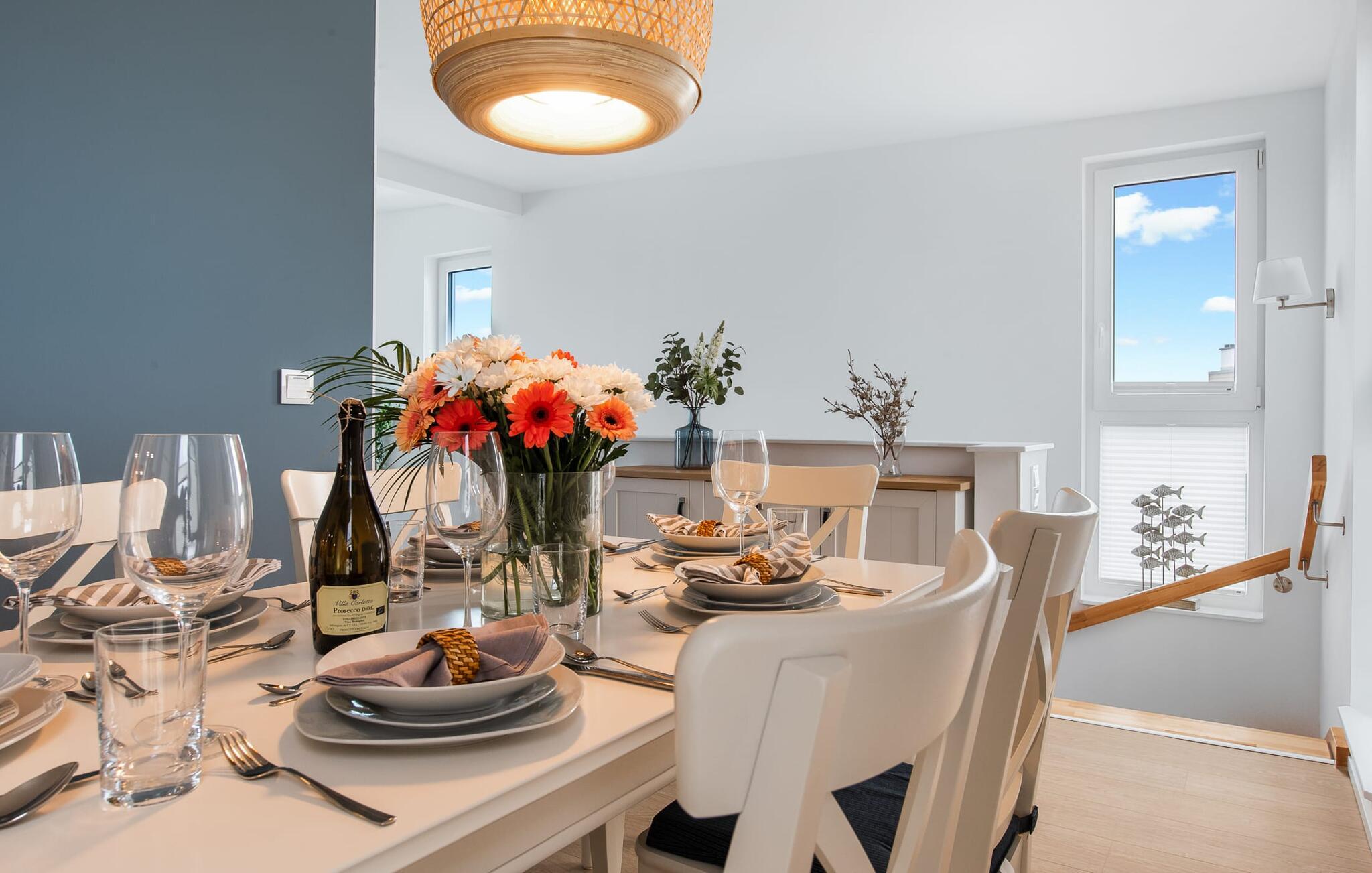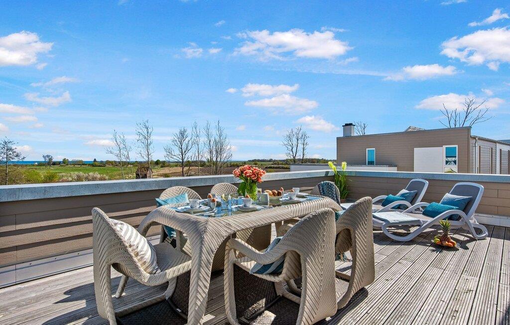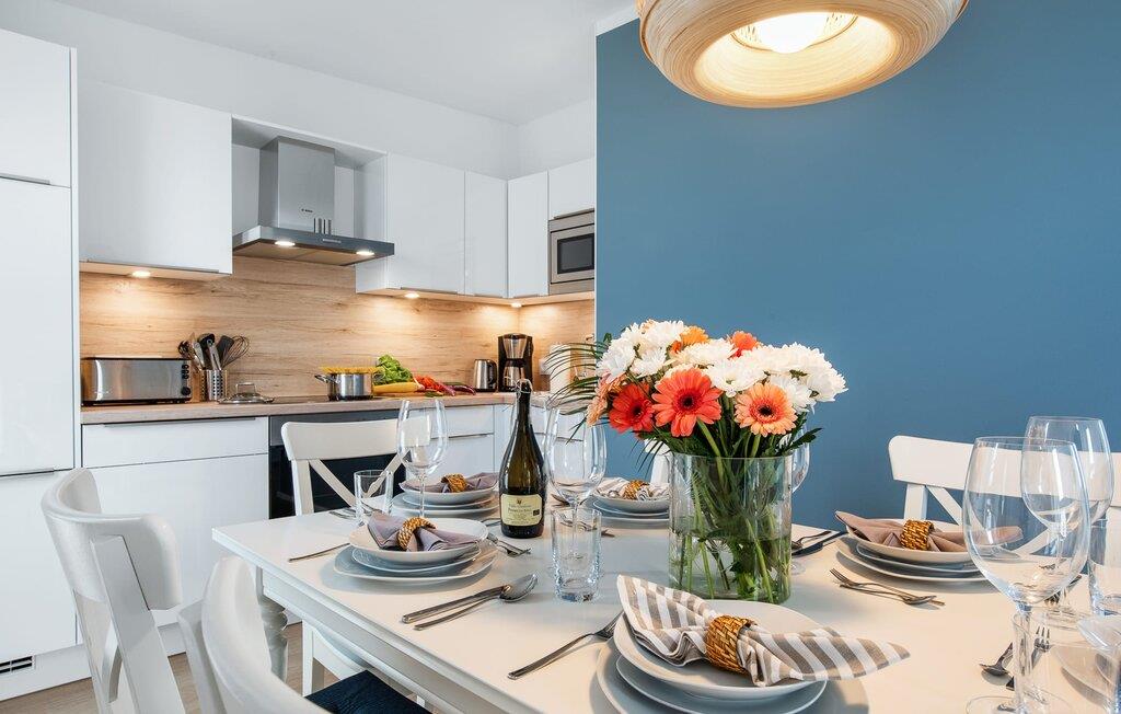 Den rummelige maisonette-ferielejlighed STRANDDECK til 6 personer ligger på første og anden sal og tilbyder direkte udsigt over de naturbevarende strandenge og marker. Sandstranden Weidefelder med kiosk, restaurant og strandstole ligger i gåafstand og er et attraktivt rejsemål på alle tider af året. Minigolfbanen med maritimt tema ligger også i umiddelbar nærhed og glæder både store og små. Når I træder ind i ferielejligheden på første sal, begynder nedbremsningen fra allerførste øjeblik. I er direkte i lejlighedens afslapningsområde. Lejlighedens tre soveværelser er placeret på denne etage. Uanset hvilket soveværelse I vælger, kan I være sikker på en afslappende søvn. Et soveværelse er udstyret med en dobbeltseng og et fjernsyn. De to andre soveværelser har hver to enkeltsenge til afslappende nætter på ferie. På denne etage er der også et veludstyret badeværelse med bruser i gulvniveau og infrarød sauna. En oase af velvære, der sikrer ren afslapning i hver sæson. En gang på anden sal lever STRANDDECK op til sit navn. Indrettet til høj standard i landstedsstil med maritime elementer, bydes I velkommen af en vinduesfront fra gulv til loft med tilstødende terrasse og udsigt til de naturbeskyttede strandenge. At komme ind og straks føle sig hjemme er én ting. At slappe af i den hyggelige opholdsstue, nyde naturens fred og ro ud af vinduet eller se tv er ren afslapning og afslapning! Hverdagen bliver mere og mere fjern... Skulle vejret nogensinde blive nordisk, vil pejsen med sin brølende ild give yderligere hygge. Det integrerede køkken er perfekt udstyret, og det er sjovt at lave mad sammen. Så nyd de færdige lækkerier på terrassen, som også er udstyret til høj standard, eller start en hyggelig grillaften... Det er ren ferie. Direkte fra opholdsområdet kommer man ind på den store terrasse med syd-vest orientering. Vender mod bagsiden med udsigt til de naturbevarende strandenge, Østersøen, marker og havet, er hyggelige timer garanteret. Et andet komplet badeværelse med bruser og badekar afrunder ideelt set hele pakken til en afslappende ferie. Foran ferielejligheden finder I jeres egen parkeringsplads. Vores favoritsted: Afslut en vidunderlig dag på terrassen med en klar udsigt over naturreservatet mod Østersøen. Bemærk venligst: OstseeResort Olpenitz er meget populært, og der bygges fortsat i parken. Ikke desto mindre kan I se frem til en 5-stjernet standard og et førsteklasses ophold. Byggeaktiviteterne kommer ikke til at forstyrre jer på ferien, og derfor gives der ikke yderligere afslag i prisen.